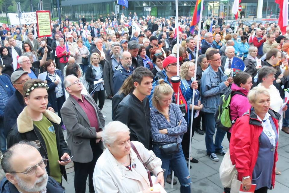 Wieczorem w czwartek 19 lipca przed budynkiem krakowskiego Sądu Okręgowego zebrały się setki osób z transparentami i – już tradycyjnie – z zapalonymi świeczkami w rękach, by zaprotestować przeciwko ostatnim działaniom Prawa i Sprawiedliwości uderzającym w polskie sądownictwo. Manifestacja rozpoczęła się od wysłuchania relacji z wystąpienia rzecznika praw obywatelskich Adama Bodnara, który podczas posiedzenia sejmowej Komisji Sprawiedliwości i Praw Człowieka stwierdził m.in, że w Polsce nie ma już niezależnego Trybunału Konstytucyjnego. Jako pierwszy do zebranych przemówił profesor Fryderyk Zoll, który wskazywał na ignorowanie przez władze opinii, jaką o Polsce mają obecnie niemal wszystkie istotne gremia w Europie i na świecie, oraz na całkowitą izolację Polski na arenie międzynarodowej. Podkreślał, że w Polsce zanikają ostatnie instytucje demokratyczne: