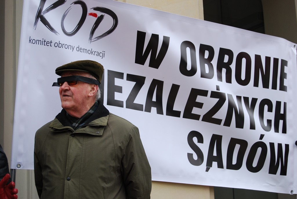 Oba protesty, w Kielcach i Starachowicach, podobnie jak w całej Polsce, rozpoczęły się w południe, 20 kwietnia. W tym samym czasie w sądach zostały zwołane narady, podczas których sędziowie debatowali, co robić w sytuacji, kiedy rząd próbuje ograniczyć ich niezależność. Przed Sądem Okręgowym w Kielcach przy ul. Seminaryjskiej zebrało się kilkanaście osób, członków i sympatyków KOD. Mieliśmy transparenty, m.in. „KOD w obronie niezależnych sądów”. Wszyscy otrzymali czarne opaski, które równocześnie założyli na oczy jako symbol bezradności człowieka wobec niesprawiedliwego państwa.