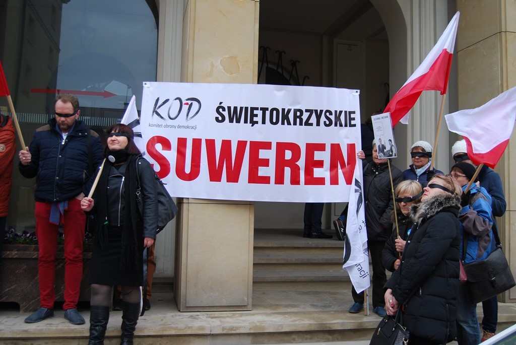 Dziennikarze pytali, czego obawiają się protestujący. – Zmierza to do tego, że prezesi sądów, wiceprezesi, sędziowie sądów powszechnych będą mogli być powoływani przez polityków. Przejęta zostanie władza sądownicza, co zagraża trójpodziałowi władzy w Polsce. Nasz protest jest symboliczny, milczący. Chcemy pokazać, że protestujemy przeciwko upolitycznianiu sądów — mówiła Monika Szafraniec, przewodnicząca Zarządu Regionu Świętokrzyskiego KOD.