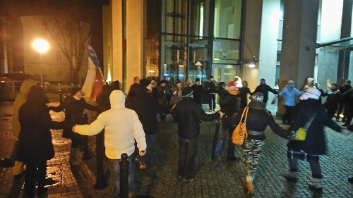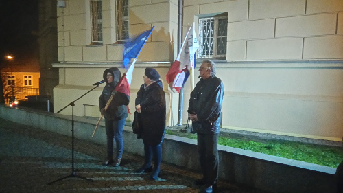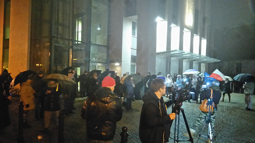 14 grudnia, jesteśmy pod Sądem Rejonowym w Zielonej Górze. W Senacie przegłosowywane są właśnie ustawy o SN i KRS. To pogrzeb niezależnego sądownictwa…. Warunki atmosferyczne fatalne, ale mamy gorący barszcz i dzielimy się nim z tymi, którzy przyszli na nasze wezwanie…. Na koniec wspólny „Czarny walc”…. Taka nasza „wigilia”…. Dziękujemy wszystkim za kolejny rok szlifowania płyt chodnikowych… Wspierajcie nas nieustannie w proteście!