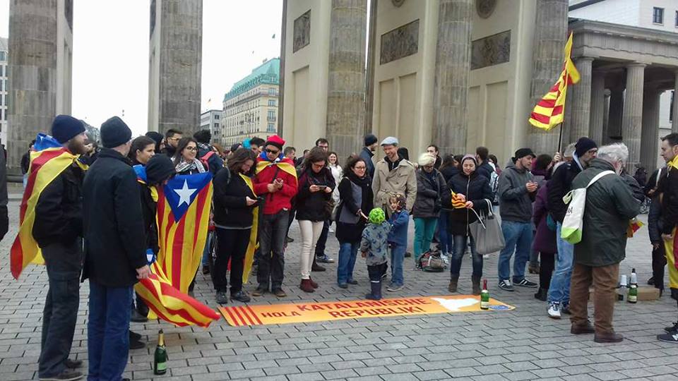 Spotkaliśmy również protestujących Katalończyków przed Bramą Brandenburską, którzy śpiewali piosenkę L’Estaca ( napisaną w 1968 przez katalońskiego pieśniarza Lluísa Llacha ), a która dzięki Jackowi Kaczmarskiemu stała się hymnem Solidarności pod tytułem „Mury”.