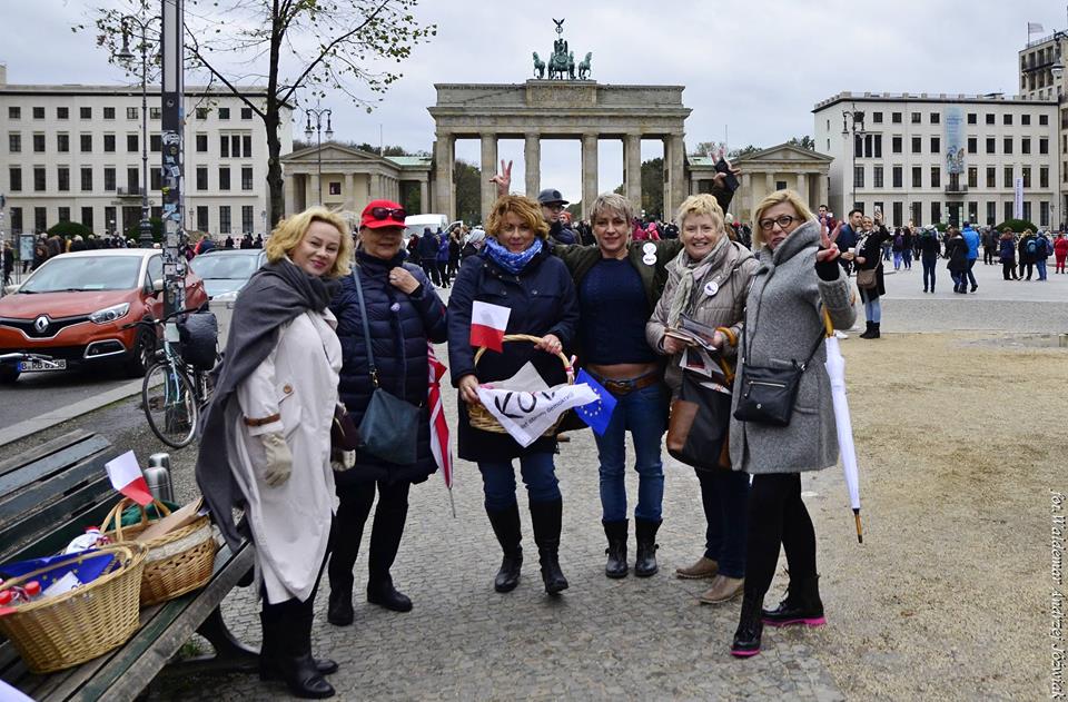 Dlatego doszliśmy do wniosku, że trzeba naszym najbliższym sąsiadom pokazać, że w Polsce istnieją potężne ruchy obywatelskie, które przeciwstawiają się wprowadzeniu w Polsce dyktatury, łamaniu zasady trójpodziału władzy, zawłaszczeniu niezawisłości sądów, że walczymy również o prawa kobiet, prawa człowieka, prawa mniejszości. 28 października 2017 r. grupa koderów z Wielkopolski – (Grażyna, Jola, Iza i Adriana ) zorganizowała wyjazd do Berlina ( przy wsparciu Krystyny, Andrzeja i Waldemara).
