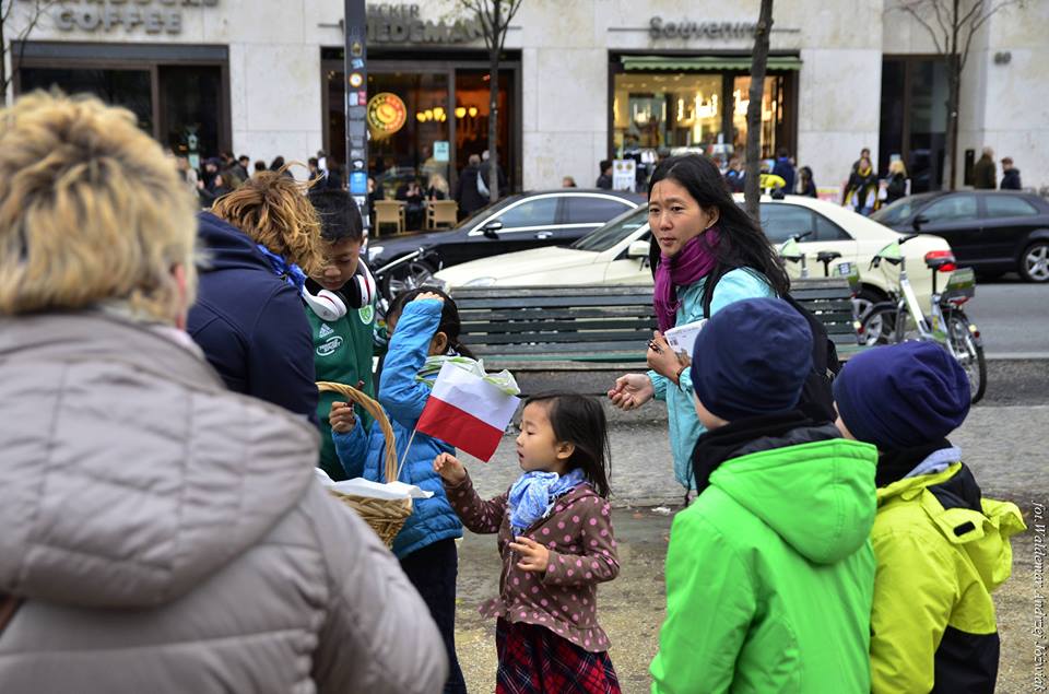 Będąc na miejscu staraliśmy się przekazać, jak wygląda sytuacja w naszym kraju. Przygotowaliśmy ulotki w języku niemieckim, angielskim oraz polskim ( bo przecież jest tam i nasza Polonia) .