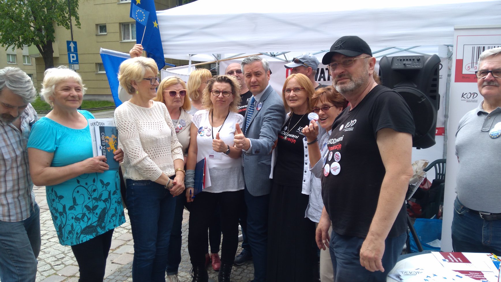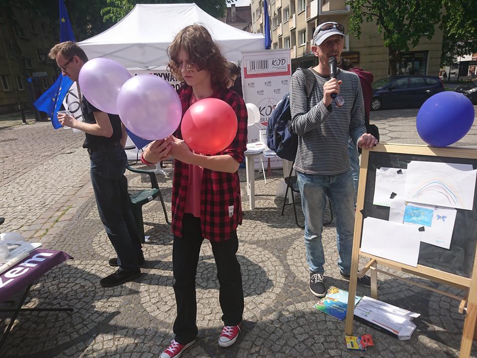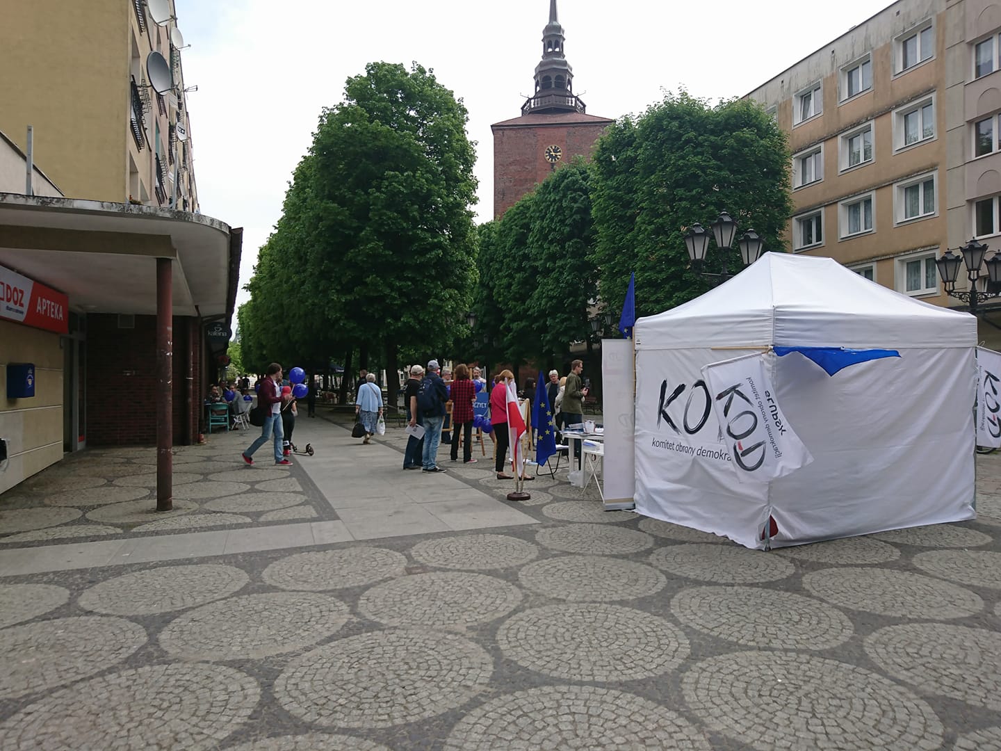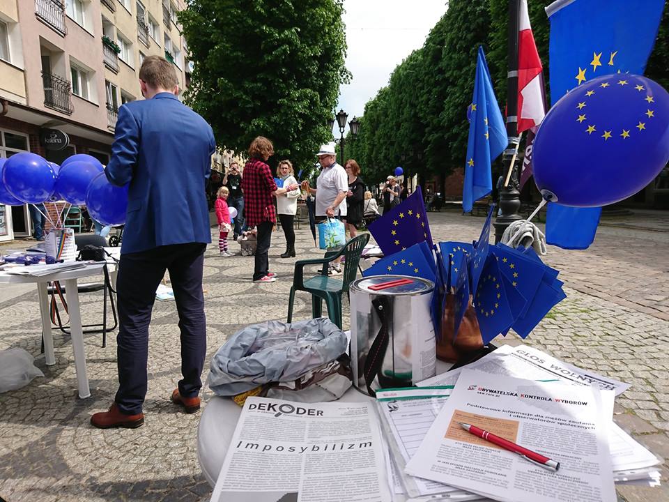 W sobotę razem z przyjaciółmi z KOD świętowaliśmy Dzień Europy w Słupsku. Jednocześnie wyrażaliśmy poparcie dla Marszu Wolności, który tego dnia odbywał się w Warszawie. Świętowaliśmy z obywatelami naszego miasta przynależność Polski do Unii Europejskiej. Mieliśmy dla mieszkańców Głos Wolnych, Dekoder, broszurki i materiały z miejskiego Punktu Informacji Europejskiej. Dla dzieci baloniki, flagi oraz cukierki. Częstowaliśmy naszych gości ciastem. Przygotowaliśmy osobny punkt informacyjny o Obywatelskiej Kontroli Wyborów. Zachęcaliśmy ludzi do dołączenia i „pilnowania” uczciwości najbliższych wyborów. Odwiedziło nas mnóstwo gości, na czele z Robertem Biedroniem oraz Tomaszem Piątkiem. Jednocześnie dziękujemy za wsparcie, udział i pomoc w całej akcji koderom z Lęborka oraz Gdańska. Nasi przyjaciele z partii Razem zbierali podpisy pod obywatelskim projektem skracającym czas pracy. To był naprawdę udany dzień. Z pewnością zrobimy jeszcze niejedną akcję dla mieszkańców Słupska.