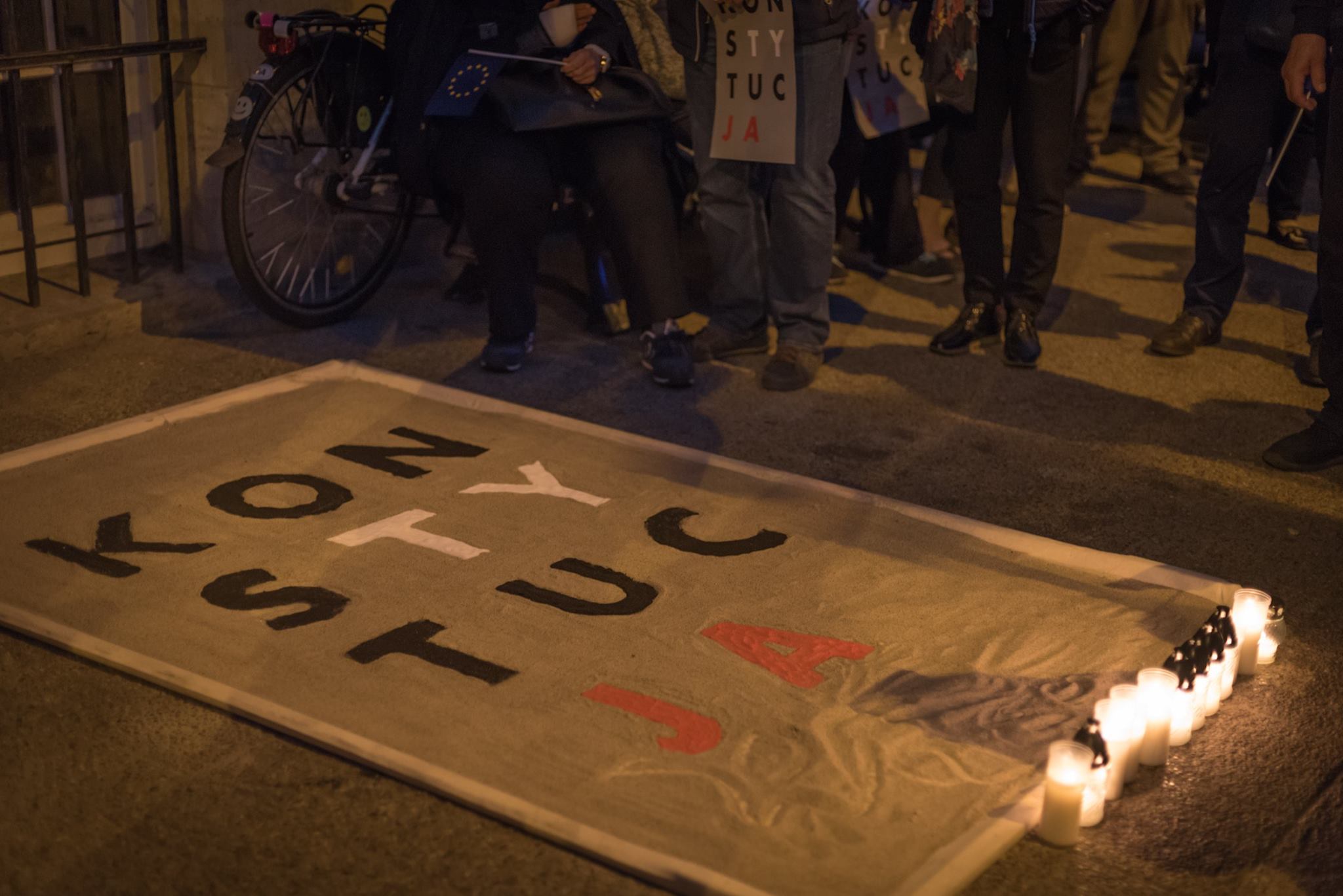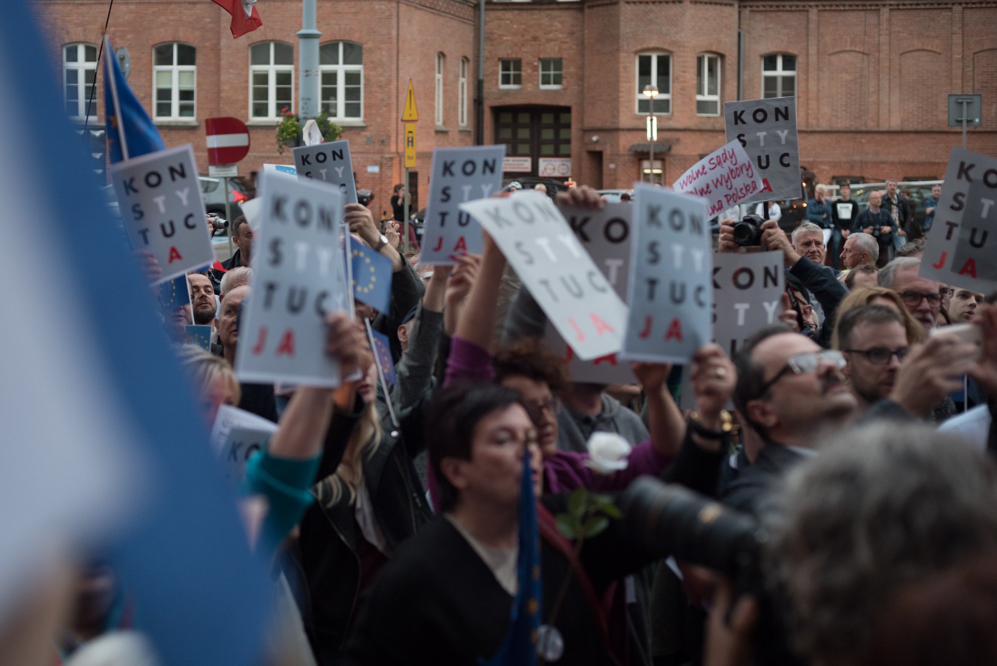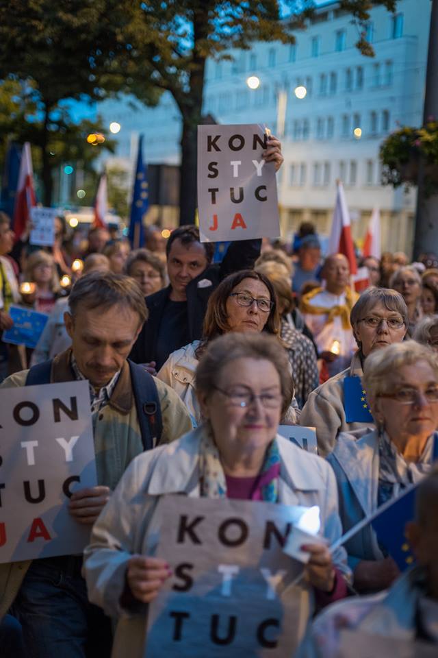 3 lipca pod Sądem Okręgowym w Gdańsku punktualnie o 21.00 rozpoczęła się manifestacja Komitetu Obrony Demokracji i Obywateli RP, udział wzięli nie tylko członkowie obu organizacji ale również mieszkańcy trójmiasta. Całe demokratyczne Pomorze spotkało się tego dnia pod Sądem w proteście przeciwko niszczenia Sądu Najwyższego przez partię rządzącą. Zgromadzenie swoim przemówieniem otworzył Lech Wałęsa. Prezydent przypomniał na wstępie swojego wystąpienia o ważności istnienia trójpodziału władzy. Poinformował zgromadzonych, że następnego dnia wybiera się pod Sąd Najwyższy do Warszawy, żeby przypomnieć rodakom, że PiS niszczy dorobek dawnej Solidarności i tych wszystkich, którzy walczyli o wolność w latach 80′. Zaznaczył również jak ważne jest rozliczenie obecnej władzy oraz późniejsza naprawa Polski i odbudowa naszych relacji międzynarodowych. Później głos zabrał Przewodniczący KOD Pomorze Radomir Szumełda, który zaznaczył jak groźne dla zwykłych obywateli jest upolitycznienie sądów. Przewodniczący mówił o skutkach jakie mogą nieść za sobą zmiany w ustawie o SN oraz łamanie Konstytucji. Zaznaczył, że obywatele nie będą mogli już liczyć na sprawiedliwe procesy w sądach. Szumełda jasno powiedział, że musimy walczyć do końca nawet jeśli tej walki wygrać się nie uda, nadejdzie czas w którym praworządność w Polsce zostanie przywrócona. Zgromadzeni wysłuchali również preambuły Konstytucji oraz odegrany został hymn RP. Przemawiała również sędzia Sądu Okręgowego, która mówiła o tym, że jeśli sądy stają się polityczne, przestają być sprawiedliwe. Wolność i swobody obywatelskie zagwarantowane są w konstytucji, która nie może być zmieniona żadną ustawą, a każdy obywatel ma prawo do sprawiedliwego procesu – zaznaczyła sędzia. Apelowała również o poparcie sędziów Sądu Najwyższego. Sędzia powiedziała, że również wierzy w to, że Unia Europejska nie pozwoli na niszczenie porządku prawnego w Polsce. Tłum wznosił okrzyki „Lech Wałęsa” oraz „Wolne sądy, wolne wybory, wolna Polska”. Głos zabierali również inni trójmiejscy prawnicy i sędziowie. Zaznaczali jak ważna jest nasza obecność pod sądami w tych trudnych dla Polski dniach. Wspominali również o naszym członkostwie w Unii Europejskiej, które przecież zostało zawarte z woli polskich obywateli. Zaznaczali, że Polska jest wspólnym krajem dla wszystkich obywateli, również tych, którzy obecnie popierają działania partii rządzącej. Mecenas Nowosielski mówił o tym jak ważne są rozmowy i przekonywanie osób o innych poglądach. Przemawiał Przewodniczący Okręgowej Izby Radców Prawnych, który przedstawił stanowisko izby wobec działań rządu. Na zgromadzeniu pojawił się również Europoseł Jarosław Wałęsa. Poseł mówił o jedności europejskiej. Prosił również zgromadzonych o popieranie działań europosłów w zakresie naszego członkostwa w Unii. Atmosfera zgromadzenia była pozytywna i wyraźna. Zgromadzeni podkreślali, że Polska jest członkiem Europy, i obywatele muszą zrobić wszystko żeby nie pozwolić się z tej Europy wyprowadzić. Bo PiS próbuje prowadzić nasz kraj w stronę Rosji na co nie ma zgody. Zgromadzeni na koniec ułożyli napis KONSTYTUCJA z piasku oraz zapalili świeczki pod sądem.