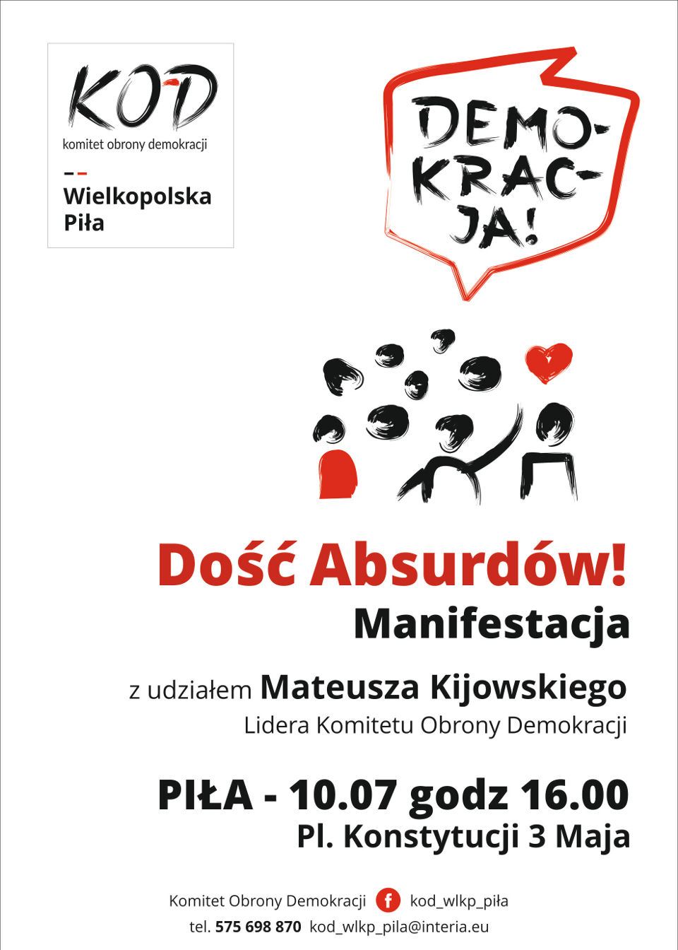 – Jako formalna grupa KOD zaczęliśmy działać 3 maja. Na Dużym Rynku w Świeciu trwały obchody Święta Konstytucji, a my ustawiliśmy nasz namiot – punkt informacyjny. Rozdawaliśmy znaczki, ulotki, rozmawialiśmy z mieszkańcami o demokracji. Przyszli nawet narodowcy, ale było spokojnie. Kolejna nasza akcja miała miejsce 23 maja w Chełmnie. Tam odwiedzający nas ludzie, oprócz informacji o działalności i celach KOD-u, mogli podpisywać się pod Obywatelskim Projektem Ustawy o Trybunale Konstytucyjnym. Niedawno w całości został odrzucony. Zbieraliśmy oprócz tego chętnych na wyjazd do Warszawy na manifestację 4 czerwca.
