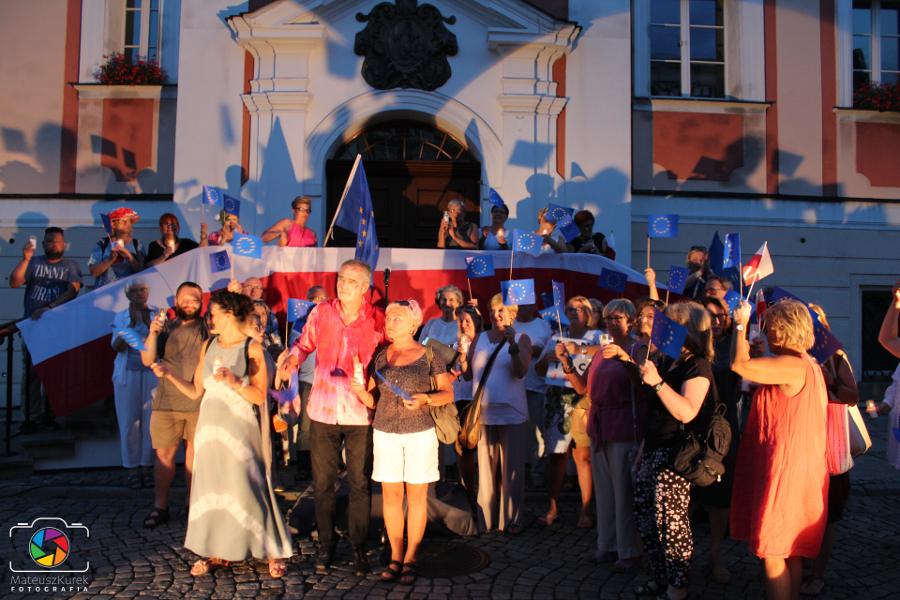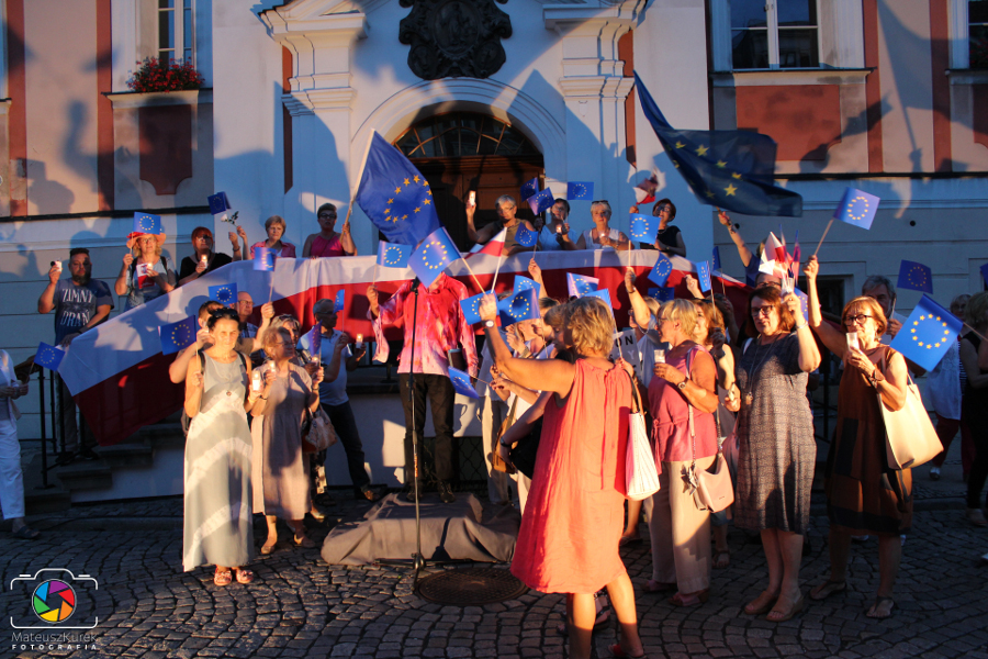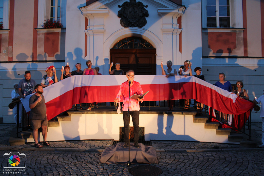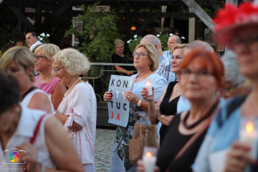 Przejmujące widowisko składało się z prezentacji tekstu wraz z grą świateł płonących w obronie wolnych sądów trzymanych przez statystów – członków opozycji ulicznej, Stowarzyszenia „My Obywatel Unii Europejskiej” i KOD. Na koniec Adriana Machowiak, liderka KOD Leszno, wygłosiła przemówienie dotyczące współczesnej Polski, którego nie mogło zabraknąć. Przy pełnych ogródkach ludzi wykrzyczała jak ważna jest Konstytucja i jej przestrzeganie, jak ważne są dla Polaków niezwisłe sądy.
