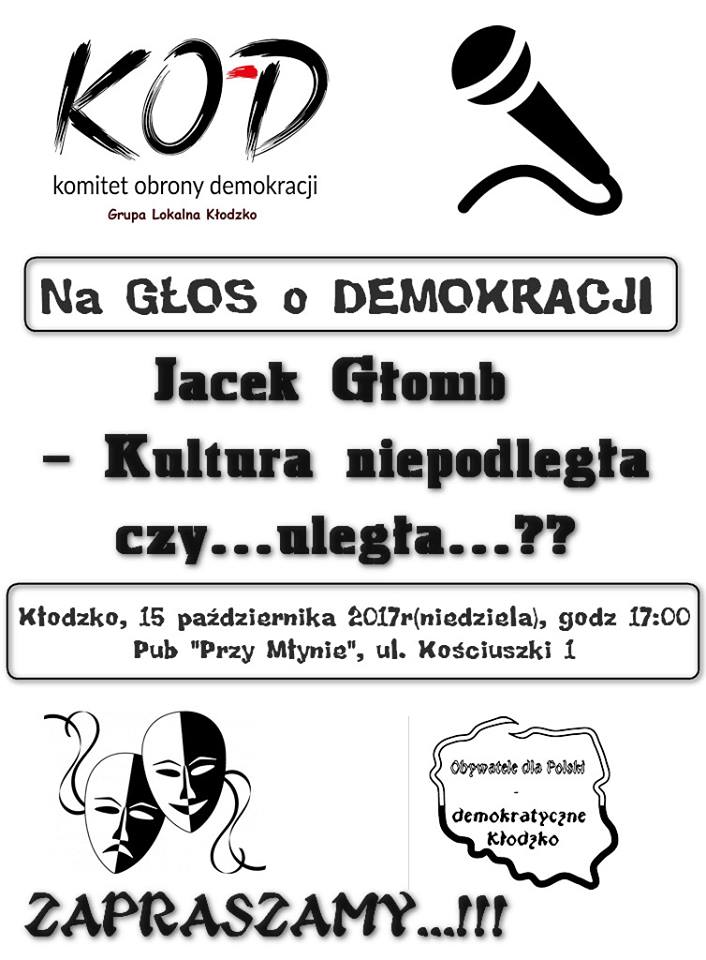 W dniu15 października 2017 r.  w Kłodzku odbyło się spotkanie z cyklu: Na GŁOS o Demokracji. Gościem kłodzkiej grupy lokalnej KOD był pan Jacek Głomb – wieloletni dyrektor Teatru im Heleny Modrzejewskiej w Legnicy.