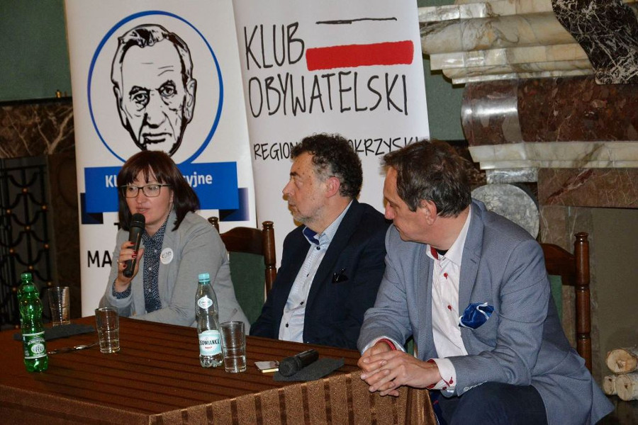 Spotkanie prowadzili Włodek Magdziarz, szef Stowarzyszenia im. T. Mazowieckiego i członek KOD oraz Monika Szafraniec, przewodnicząca Zarządu Regionu Świętokrzyskiego KOD.