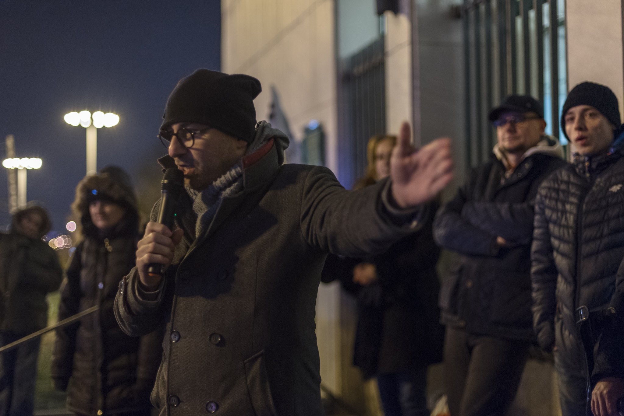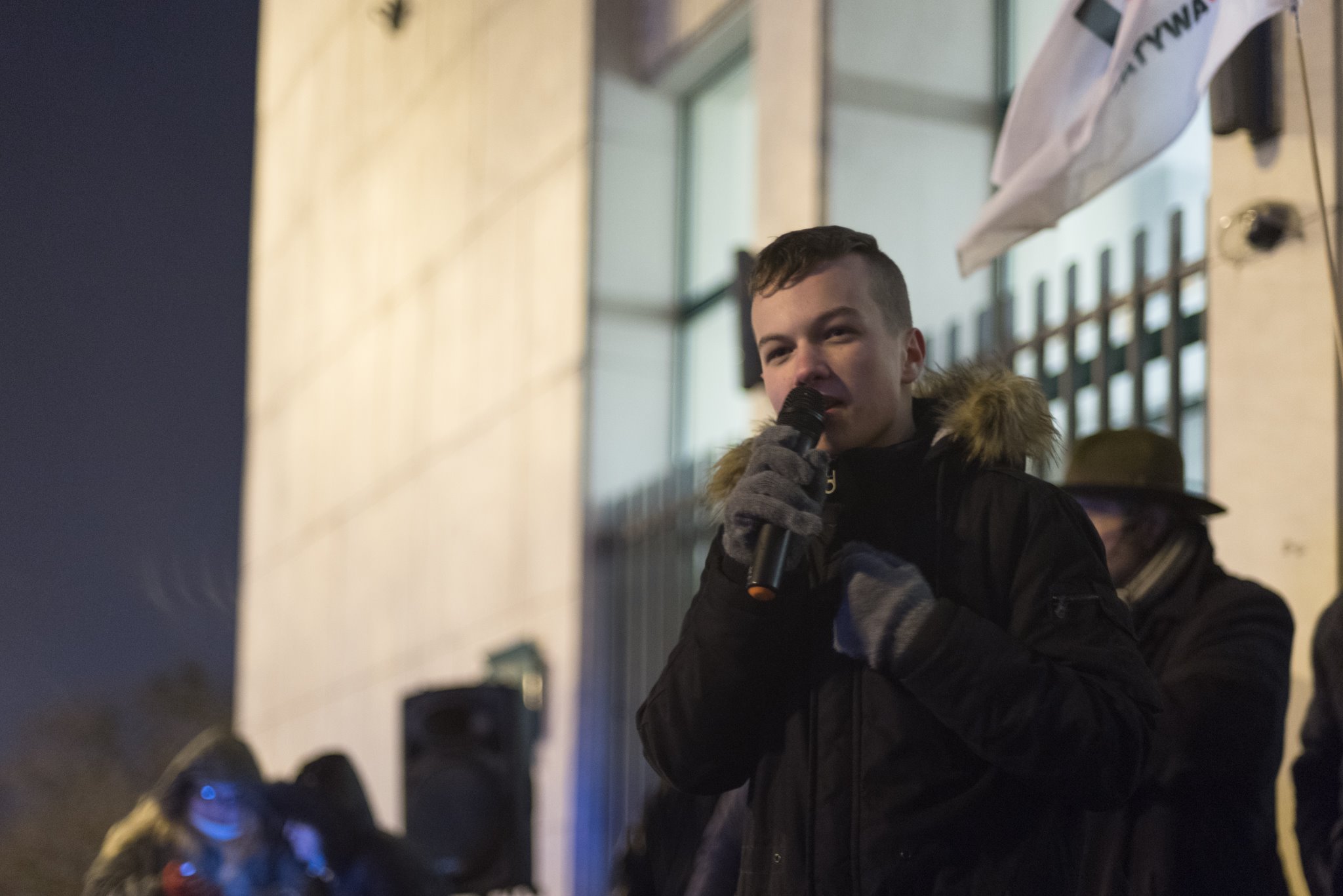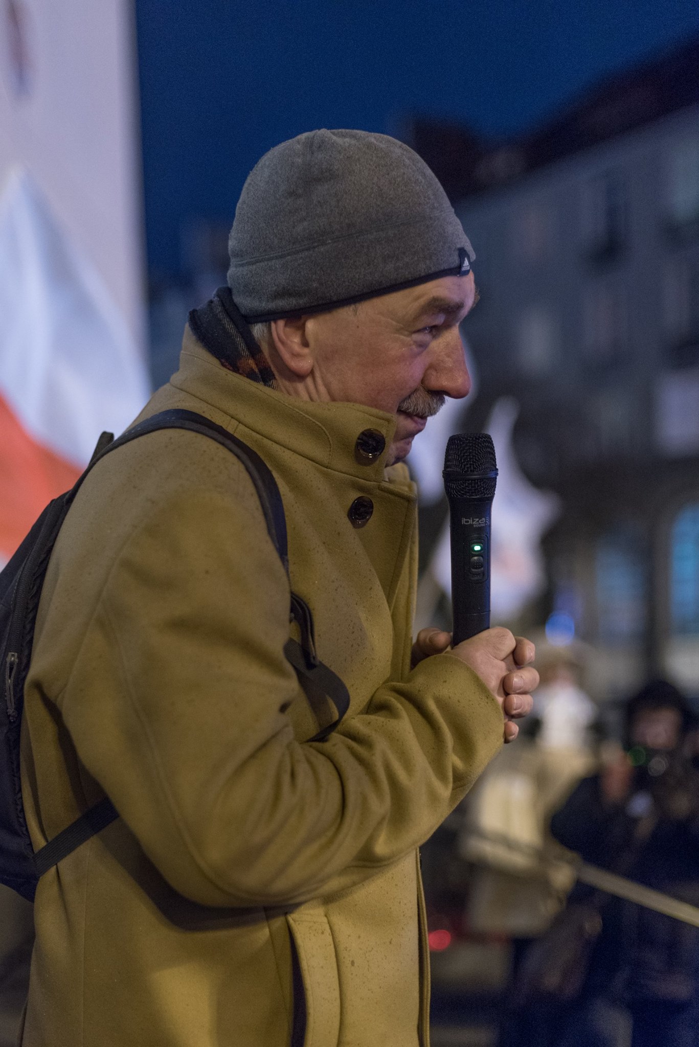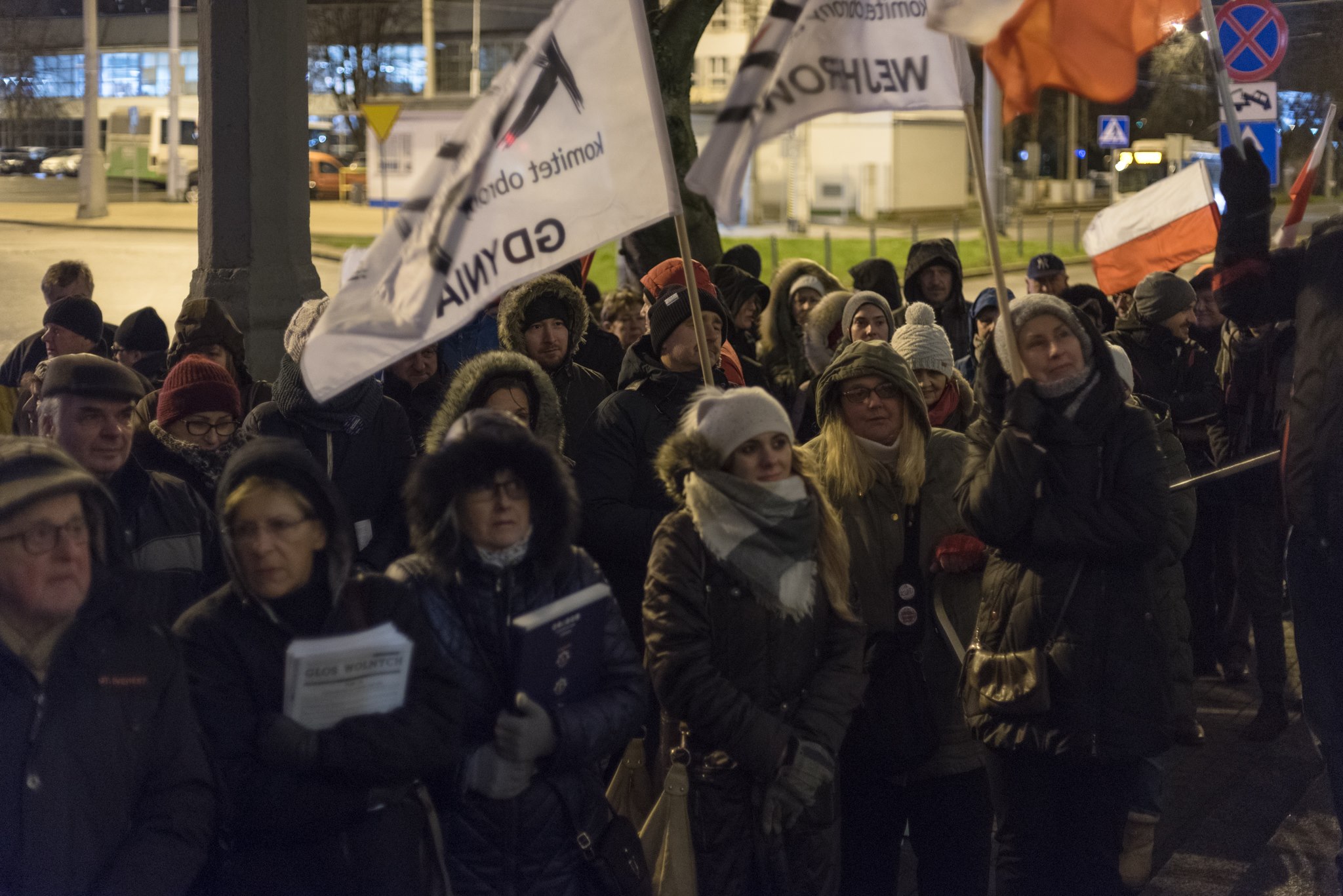 Walczymy końca! – pod takim hasłem we wtorek 12 grudnia mieszkańcy Gdyni i okolic spotkali się pod Sądem Rejonowym. Tego dnia senat obradował nad ustawami o SN i KRS, jednak tematem przemówień był również fakt nałożenia kary na TVN24 przez KRRiT. Przemawiali przedstawiciele opozycji, w tym również przewodniczący regionu Pomorskiego KOD, Radomir Szumełda. Mecenas Nowosielski zaznaczył jak ważne jest dotarcie do ludzi młodych i uświadamianie ich jak ważne są niezawisłe sądy i demokratyczne państwo prawa. Głos zabrał również Mateusz, 15 letni uczeń III klasy gimnazjum, który opowiedział jak na bieżące sprawy patrzą ludzie młodzi, wspomniał również o stanie wojennym wraz z porównaniem do obecnych czasów.
