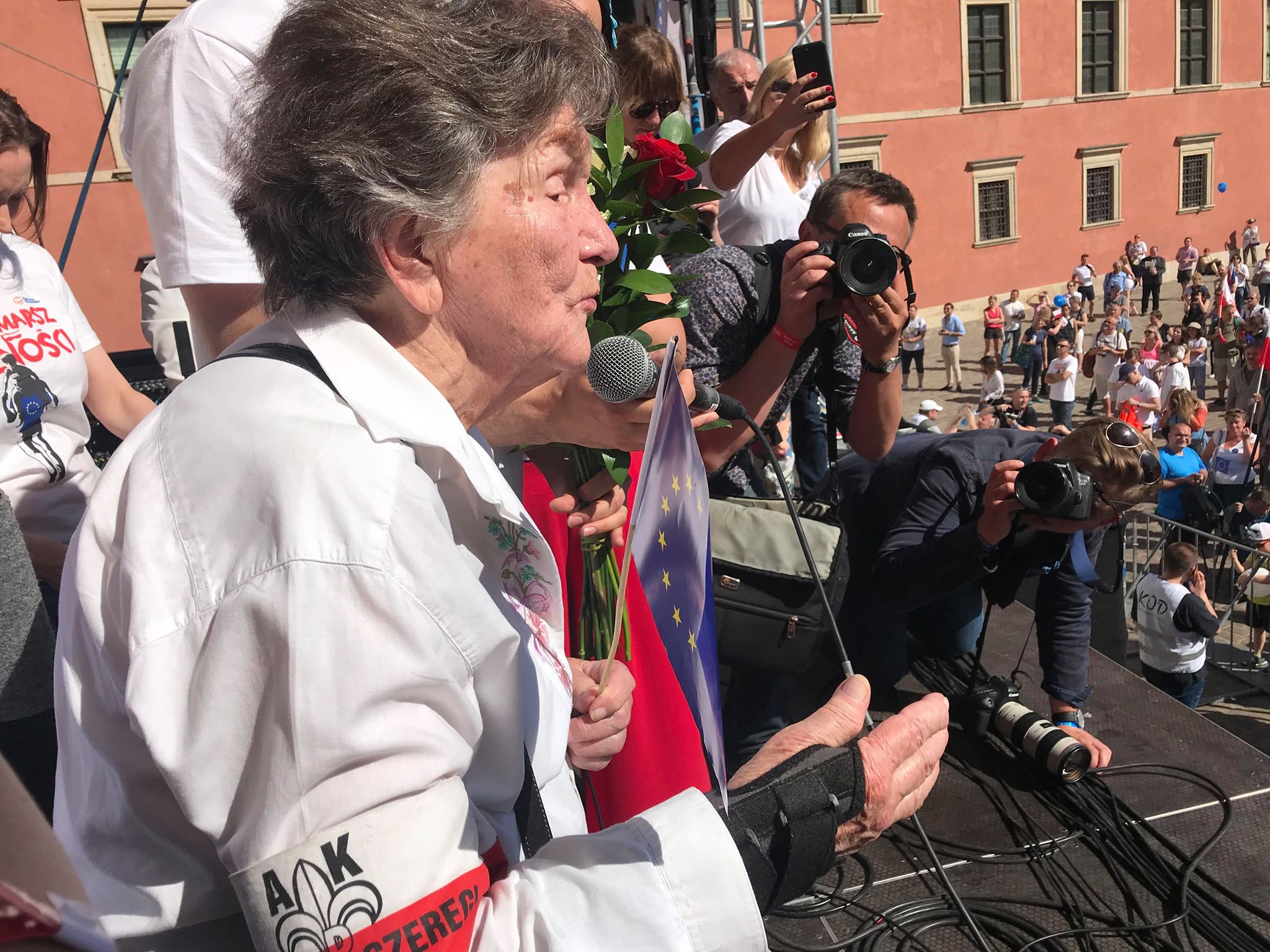 Wanda Traczyk-Stawska, ps. „Pączek”, uczestniczka powstania warszawskiego, przemawiając do zebranych, zaapelowała o wsparcie dla protestujących w sejmie od kilku tygodni rodziców osób niepełnosprawnych. Zgromadzeni odpowiadali na jej słowa burzą oklasków, wielu miało łzy w oczach. Większość zgromadzonych miała przypięte do ubrań specjalne, symboliczne kartki, wyrażające wsparcie dla protestu niepełnosprawnych w sejmie. Po marszu część zgromadzonych udała się pod sejm, by osobiście wesprzeć protestujących.