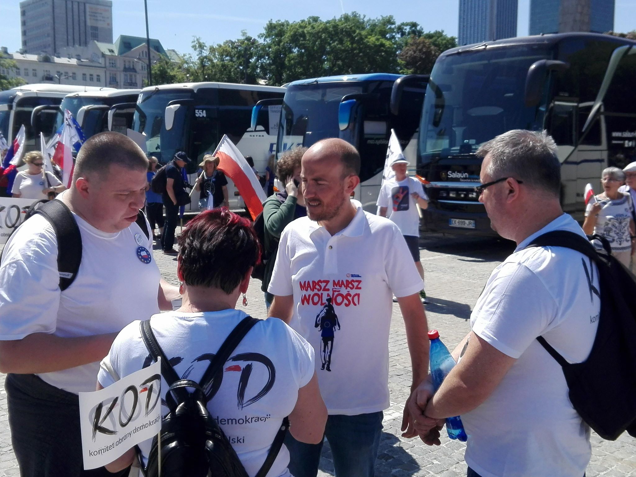 Wczesnym świtem 12.05 maja udaliśmy się trzema autokarami na Marsz Wolności organizowany w Warszawie przez zjednoczoną opozycję oraz środowiska społeczne. Opolszczyznę reprezentowały osoby m.in. z Opola, Kędzierzyna-Koźla, Dobrzenia Wielkiego, Nysy, Kluczborka, Namysłowa, Brzegu. Kilkudziesięciotysięczny tłum przemaszerował przez Warszawę na trasie Rondo de Gaulle’a – Plac Zamkowy.