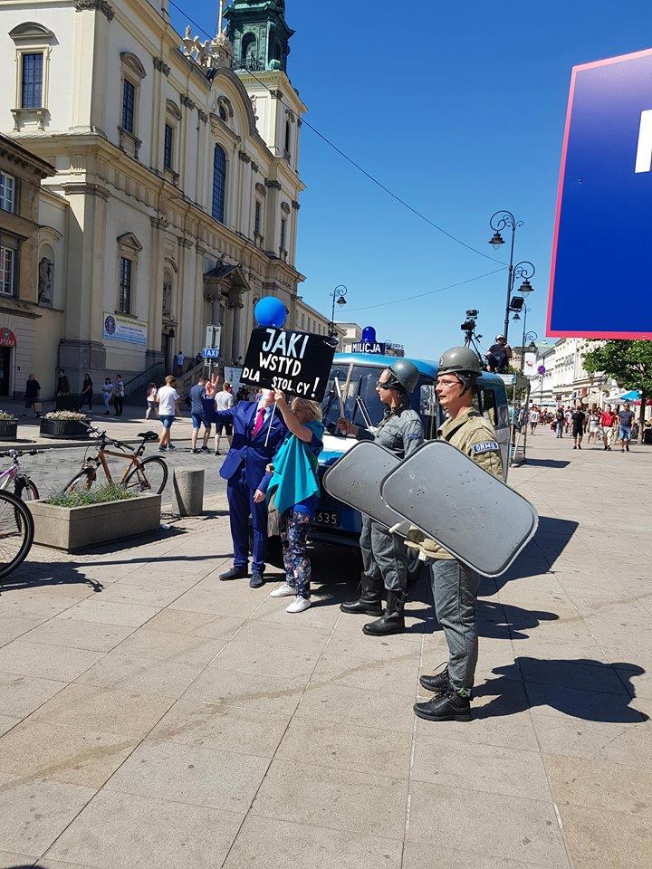 Zgromadzeni na marszu entuzjastycznymi brawami przyjęli parafrazę słów z filmu „Ziemia obiecana” w reż. A. Wajdy w wykonaniu odtwórców głównych ról (Pszoniak, Seweryn, Olbrychski): „Ja nie mam nic, ty nie masz nic, on nie ma nic, to razem mamy właśnie tyle, w sam raz tyle żeby przywrócić Polsce normalność”.