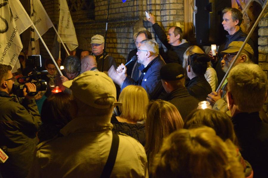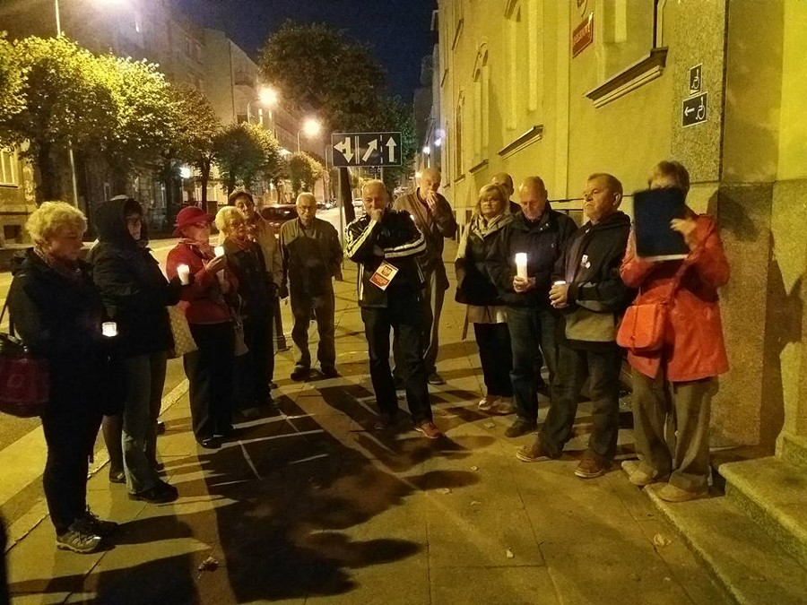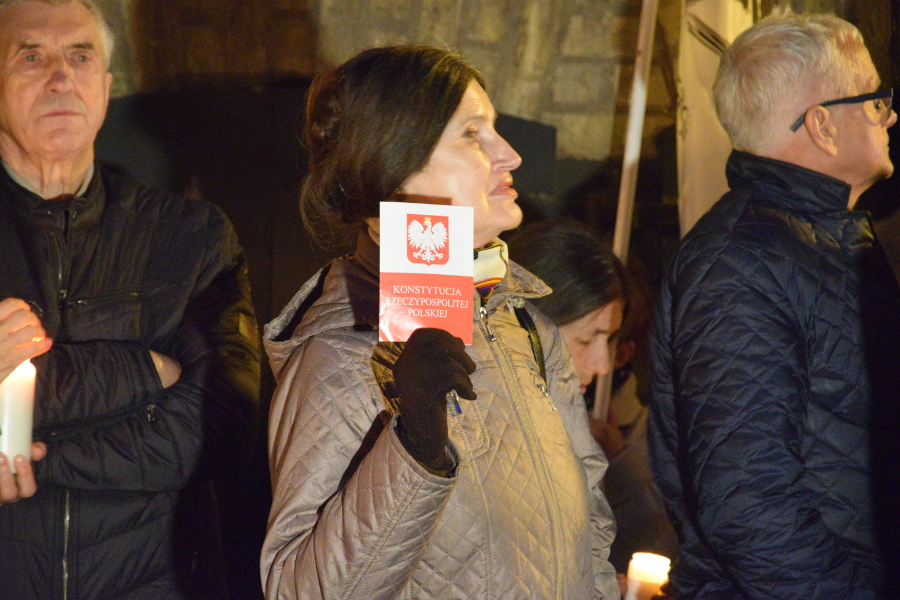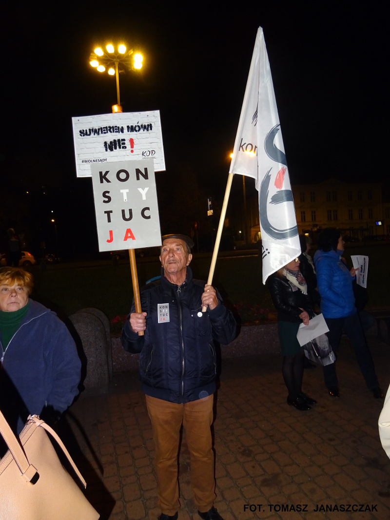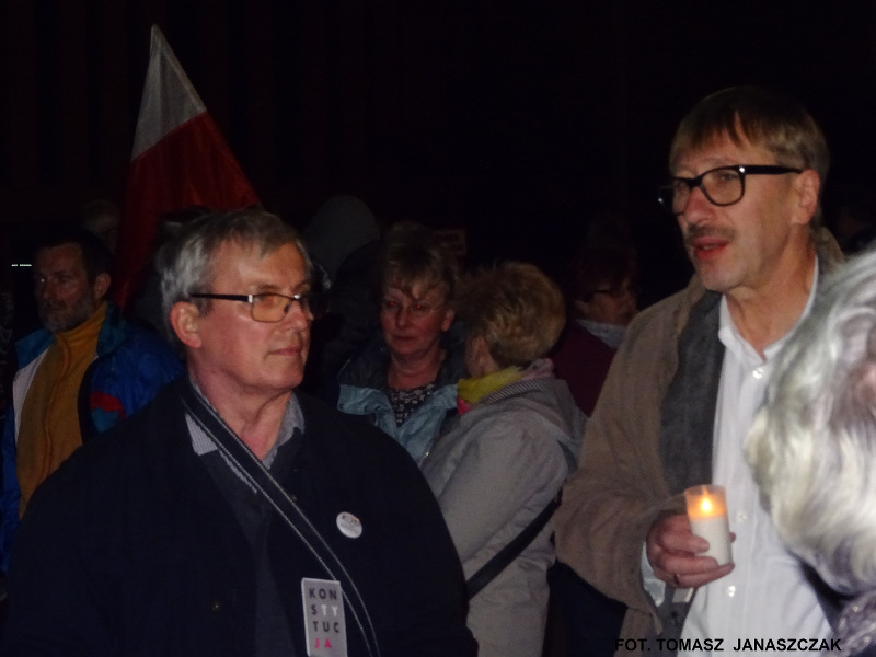 Na ulicy Piekary zebrało się ponad 300 osób, dla których wolne sądy, sądy niezależne od władzy wykonawczej są gwarancją ich wolności. Przyszliśmy ze świeczkami, transparentami, flagami, także KOD-owskimi. Wysłuchaliśmy wprowadzenia przewodniczącej regionalnego Komitetu Obrony Demokracji Aleksandry Soleckiej, objaśnienia znaczenia i zagrożeń wynikających z prezydenckich wersji zawetowanych ustaw sądowniczych dokonanego przez mecenasa Jacka Krężelewskiego, ironiczno-bajkowego opisu politycznej rzeczywistości autorstwa aktora „Baja Pomorskiego” Jacka Pietruskiego, wystąpień posłów Platformy Obywatelskiej Tomasza Lenza i Arkadiusza Myrchy na temat kulis pracy sejmowej nad ustawami sądowniczymi oraz refleksyjnego wiersza o trudnej miłości do Polski autorstwa Jonasza Kofty pt. „W moim domu”. Spotkanie zakończyliśmy odśpiewaniem hymnu oraz zobowiązaniem do spotkania się przed Sądami za tydzień, 8 października.