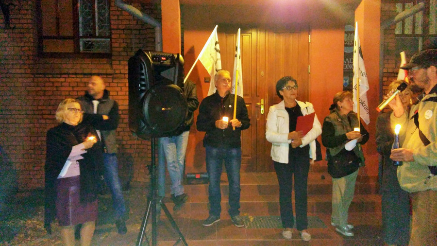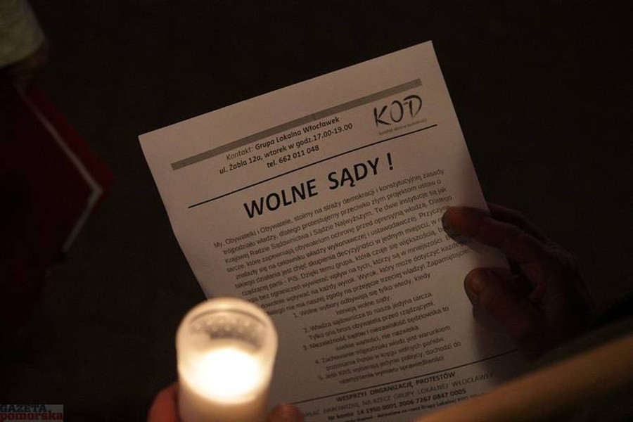 Żegnając się z mieszkańcami Włocławka w lipcowy wieczór mieliśmy nadzieję, że nie będziemy musieli ponownie zapalać świeczek. Niestety. Prezydenckie veta miały tylko wygasić bojowe nastroje społeczeństwa. Dziś już wiemy, że projekty „reformy sądownictwa” Prezydenta są równie złe jak te pierwsze… Prezydent nas oszukał. Jego propozycje łamią Konstytucję. Rozczarowani znów wyszliśmy na ulicę ze świeczkami w dłoniach. Włocławek przyłączył się do ogólnopolskiej akcji KOD „Wolne Sądy”. Pod włocławskim Sądem Rejonowym w niedzielny wieczór, 1 października, na wezwanie organizatorów – Grupy Lokalnej KOD Włocławek – zebrało się kilkadziesiąt osób, by przypomnieć , że nie pozwolimy na łamanie Konstytucji i pokazać, że nie daliśmy się uśpić zapowiedziami i obietnicami. Będziemy wychodzić za każdym razem, gdy niezawisłość sądów będzie zagrożona, gdy będzie cierpiała demokracja, gdy będzie łamana Konstytucja… Czyli właściwie będziemy trwać w nieprzerwanym proteście, gdyż zamach na demokratyczne państwo staje się faktem…