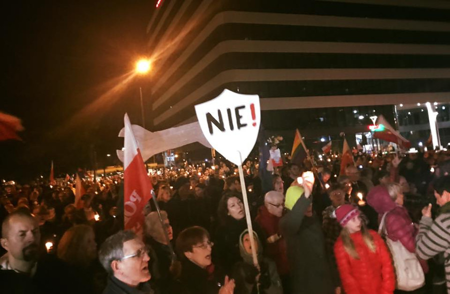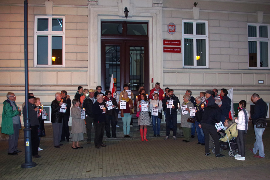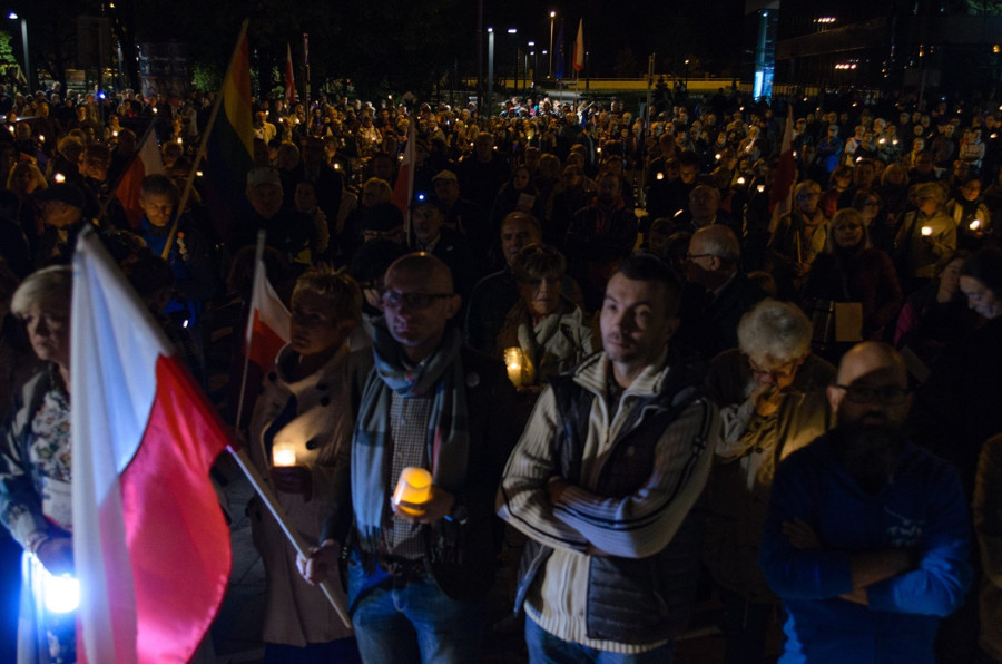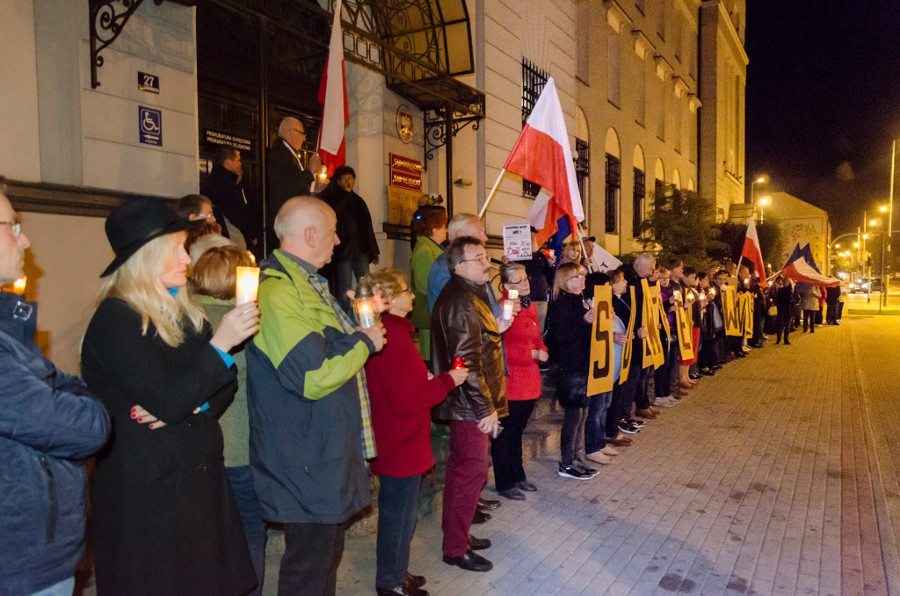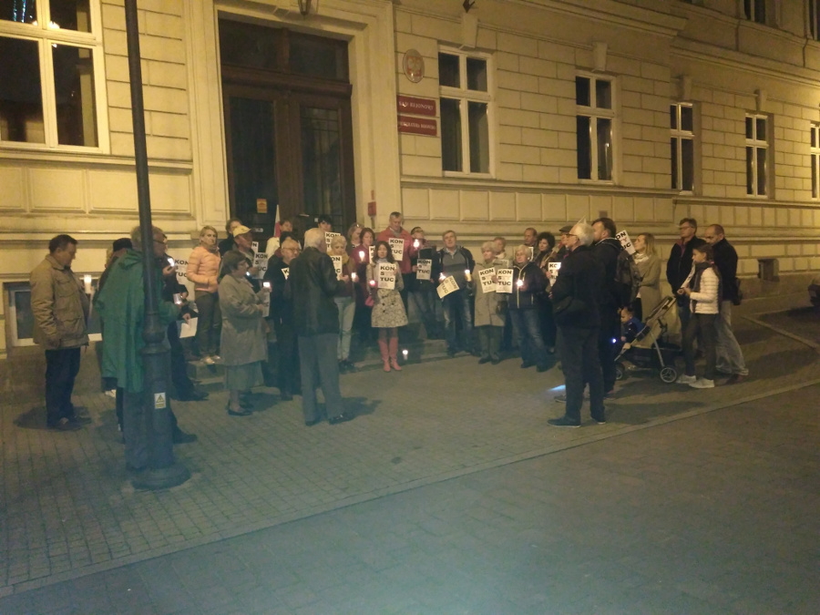 Blisko 300 osób protestowało w niedzielę pod Sądem Okręgowym w Krakowie. W rękach manifestujący trzymali zapalone znicze.