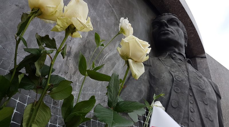 Dziś jednak było inaczej. W południe zebraliśmy się celowo pod pomnikiem Kościuszki. Przynieśliśmy białe i czerwone kwiaty, którymi udekorowaliśmy cokół pomnika. Okazja była do tego szczególna – minęło 200 lat od śmierci Naczelnika. Rok 2017 został ogłoszony rokiem Tadeusza Kościuszki, ale rzadko, stanowczo zbyt rzadko, można o nim usłyszeć.