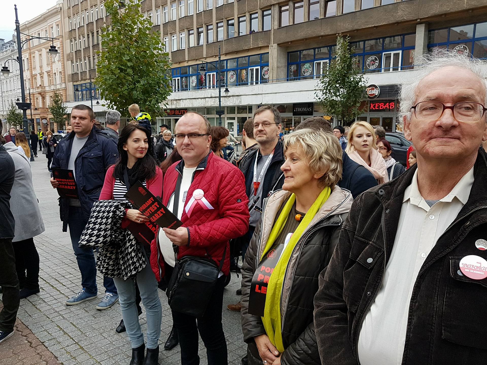 Z serca. Ze zrozumieniem dla ich problemów i potrzeb. W tym naszych interesów. Z empatią. Nie zwykłem owijać w bawełnę – ten protest wyglądał na sprzeciw wobec własnych racji. Nie naszych, mieszkańców, obywateli, sąsiadów, solidarnie z lekarzem i pacjentem. Rozżalony i zasmucony wróciłem po tym dzisiejszym proteście. „To nie jest protest polityczny” mówi gość przy mikrofonie sprzeciwiający się działaniu rządu. To co jest? Smutne. Zasklepieni we własnych „odtąd – dotąd” nie zrobimy nic. Niczego nie osiągniemy. „Moje warunki pracy”, „moja płaca”, moje, mojsze, najmojsze… Drzewa umierają stojąc. To może być świadectwem ich do cna determinacji, albo ślepej wiary, że sam też mogę wszystko. Nie mogę. Nikt nie może. I dopokąd nie zrozumie tej synergii – nie ma go. Pozostanie krzykiem bez echa.