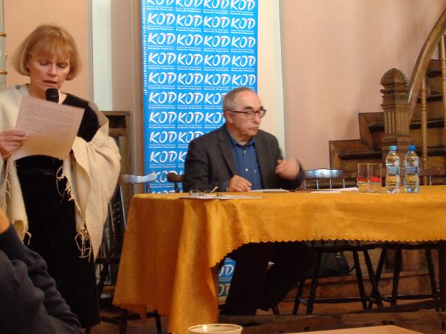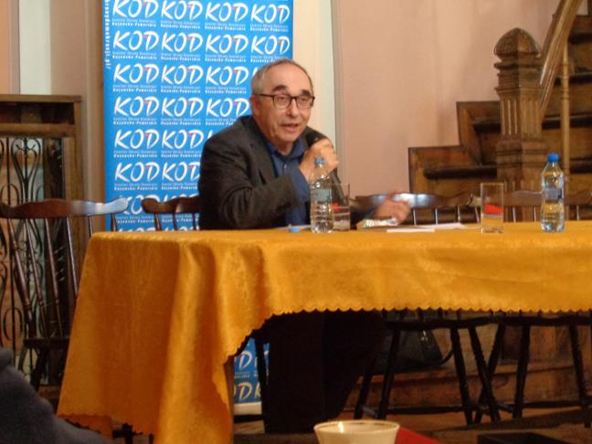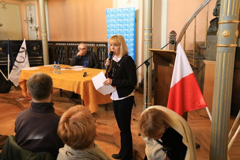 Środowe spotkanie rozpoczęła Przewodnicząca Kujawsko Pomorskiego KOD Aleksandra Solecka, witając gościa i zebranych w Sali Kolumnowej. Poinformowała o programie toruńskich Obywatelskich Obchodów 50 Rocznicy Wydarzeń Marca’68 organizowanych przez KOD. Następnie poprosiła Annę Stawikowską z komitetu organizacyjnego tej imprezy o przedstawienie pana Smolara. Po krótkim przedstawieniu gościa, Anna Stawikowska odczytała list otwarty w do władz Polski, Izraela, USA, do Unii Europejskiej i za pośrednictwem mediów do społeczeństw krajów demokratycznych oraz do obywatelki polskich. List dotyczy obecnych relacji polsko-żydowskich, Poprosiła zebranych, którzy zgadzają się z treścią tego listu, o złożenie pod nim podpisów.