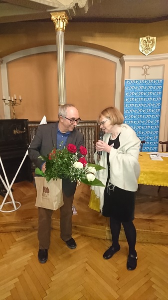 Na zakończenie prelegent otrzymał od wdzięcznych słuchaczy za pośrednictwem KOD biało-czerwone kwiaty i najlepsze w tej części świata pierniki z Żywego Muzeum Piernika Elżbiety i Andrzeja Olszewskich, a Anna Stawikowska podkreśliła, że Obywatelskie Obchody Wydarzeń Marca ’68 finansowane są głównie przez anonimowych, indywidualnych darczyńców.