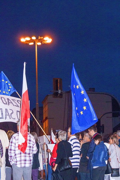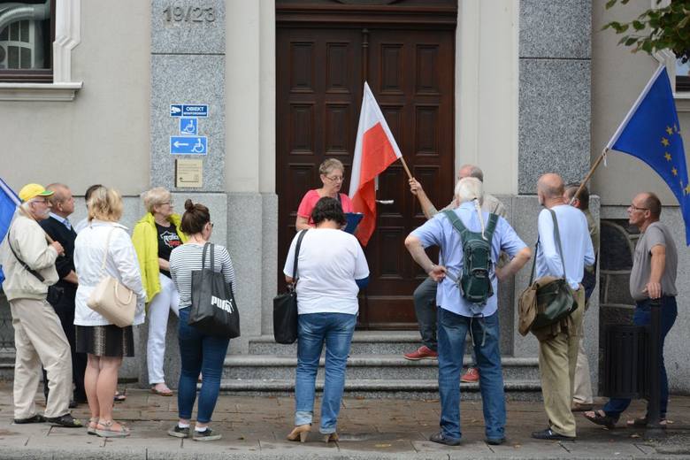 Przy sądzie w Grudziądzu, pod flagami Unii Europejskiej i z egzemplarzami konstytucji w dłoniach w środę wieczorem zebrało się kilkanaście osób.