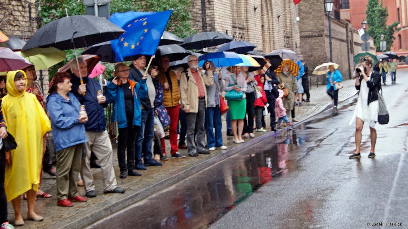 Złość na PiS, niepokój o przyszłość kraju – to jedno. Z drugiej strony – ciepłe uczucia wobec siebie nawzajem; świadomość, że nikt z nas nie jest samotny ze swoim lękiem o praworządność w Polsce, że jest nas trochę i nie damy się. Pokrzepiające były sygnały i okrzyki solidarności dobiegające ze stojących w pobliżu, na światłach, samochodów. Jakieś osoby nawet wyskoczyły na krótko na chodnik, by pomachać i zawołać: „Jesteśmy z wami”. Jak zaznaczył jeden z KOD-erów minął rok od czasu gdy publicznie nas obrażono, ale my nie możemy dać się ponieść złym uczuciom; nie będziemy – jak nasi adwersarze – ubliżać im i nazywać kłamcami, czy złodziejami. Wykładowca Uniwersytetu Kazimierza Wielkiego podkreślił też wagę humoru jako oręża walki o wolność i praworządność. Trudno też było nie zauważyć tego dnia kabaretowych aspektów posiedzenia, właśnie zakończonej, sejmowej komisji w sprawie Amber Gold. Przypominający je porównał dialogi z komisji z „Uchem prezesa”. Rozeszliśmy się jak zwykle pewni, że gdy zajdzie potrzeba stawimy się znów na wezwanie i być może będzie nas wtedy więcej.