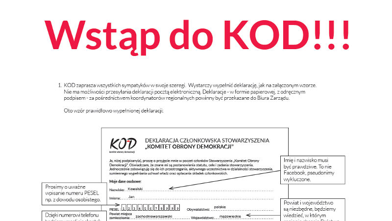 Aby zapewnić najlepsze doświadczenia, używamy technologii, takich jak pliki cookie, do przechowywania i/lub uzyskiwania dostępu do informacji o urządzeniu. Wyrażenie zgody na te technologie pozwoli nam przetwarzać dane, takie jak zachowanie przeglądania lub unikalne identyfikatory na tej stronie. Brak zgody lub jej wycofanie może niekorzystnie wpłynąć na niektóre funkcje i cechy. Zobacz "Politykę prywatności KOD"