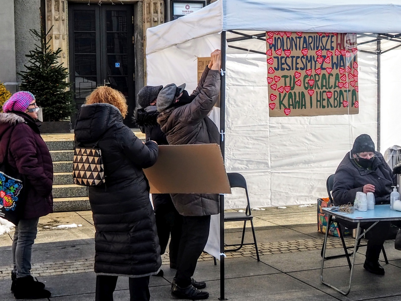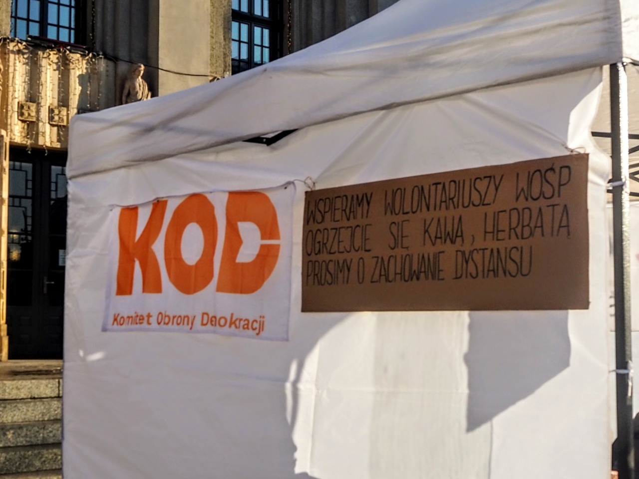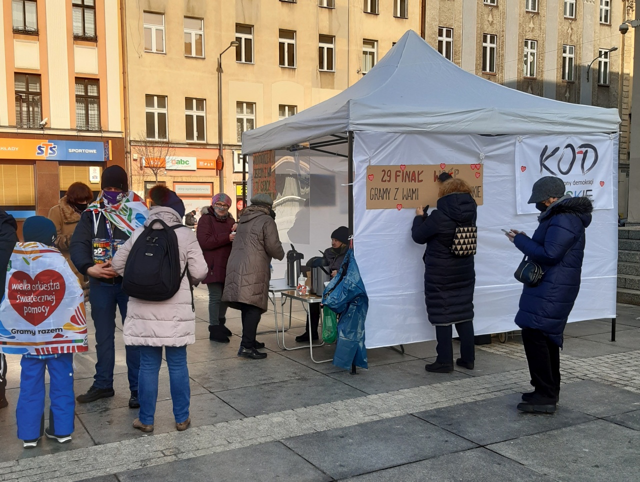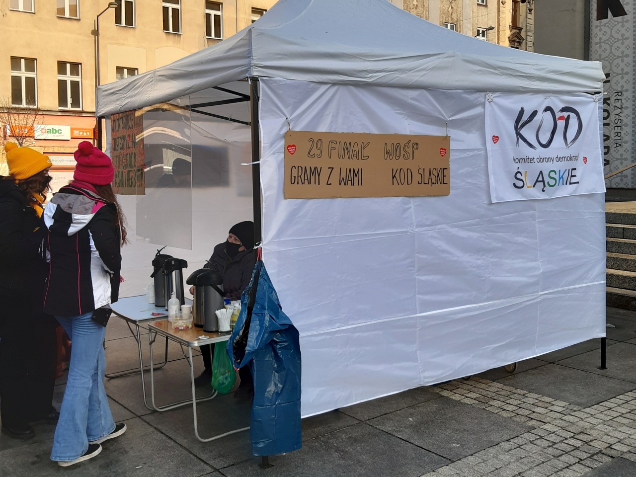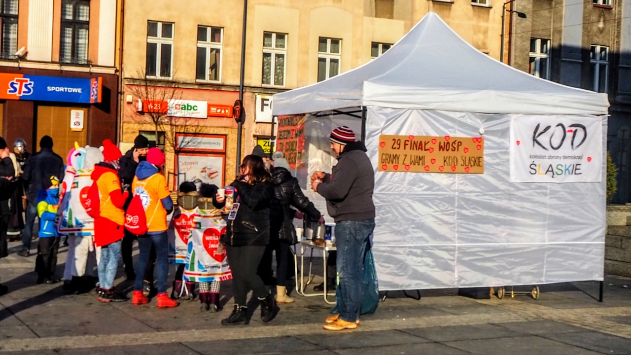 Jak co roku, bo stało się to już pewną tradycją, Śląski KOD gra z Wielką Orkiestrą Świątecznej Pomocy. Rozstawiamy namiot na Rynku w Katowicach i rozdajemy zziębniętym wolontariuszom gorącą herbatę lub kawę. I w tym roku było bardzo serdecznie i wesoło.