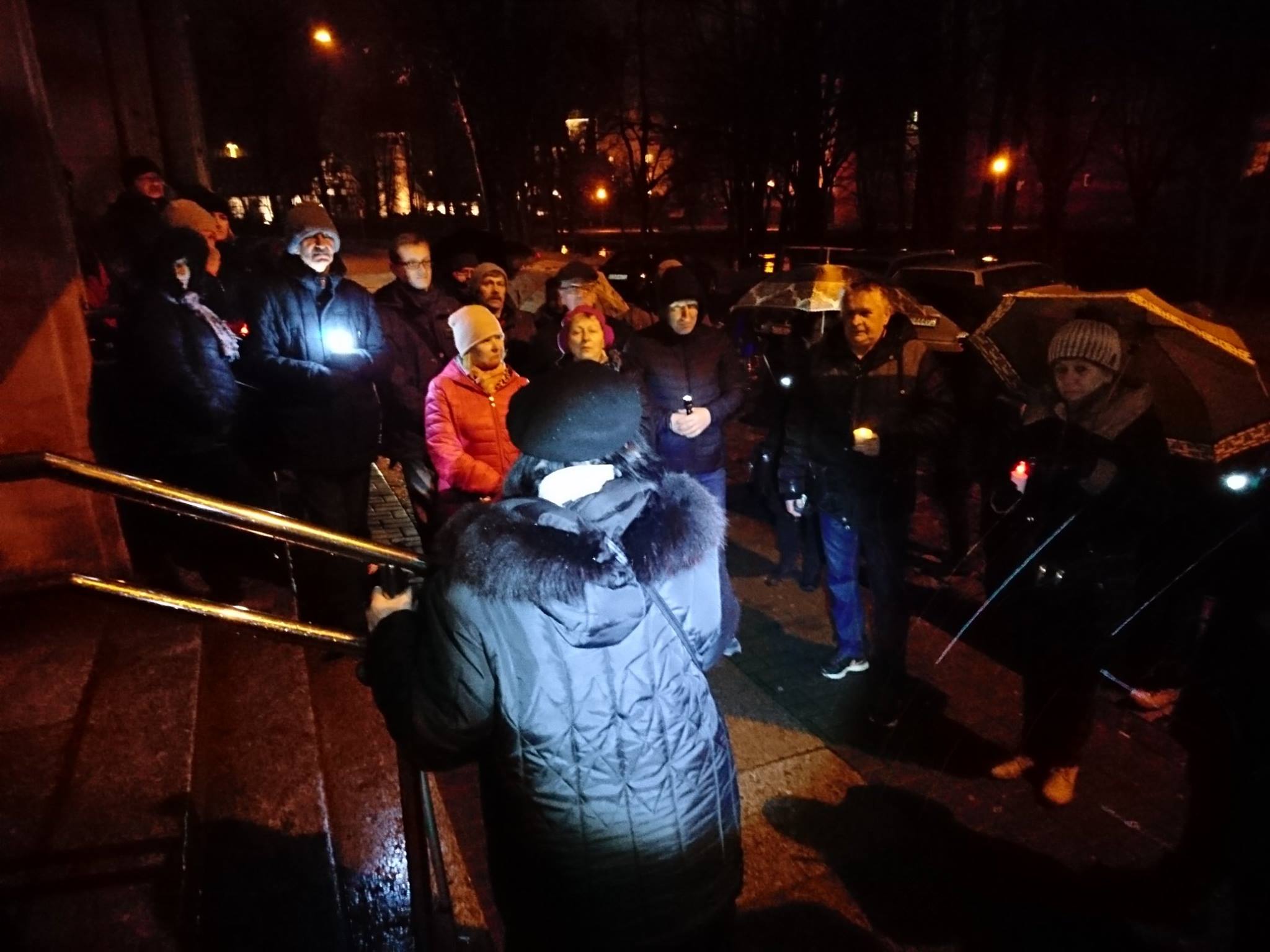 3xW czyli wolne sądy, wolne wybory, wolna Polska – to hasła pikiety która odbyła się 5 grudnia pod Sądem Okręgowym w Słupsku. Grupa kilkudziesięciu osób manifestowała swój sprzeciw i brak zgody na zmianę Konstytucji, partyjne sądy, autorytarne rządy i wyjście z Unii Europejskiej. Uczestnicy przynieśli flagi Polski, Unii Europejskiej oraz świeczki. Podczas zgromadzenia głos zabrała Anna Bogucka-Skowrońska – legendarna działaczka Solidarności, adwokat, była sędzia Trybunału Stanu. Mówczyni opowiedziała zgromadzonym o podziałach w społeczeństwie, strachu który próbuje wzbudzać w obywatelach partia rządząca oraz o księdzu Bonieckiem.
