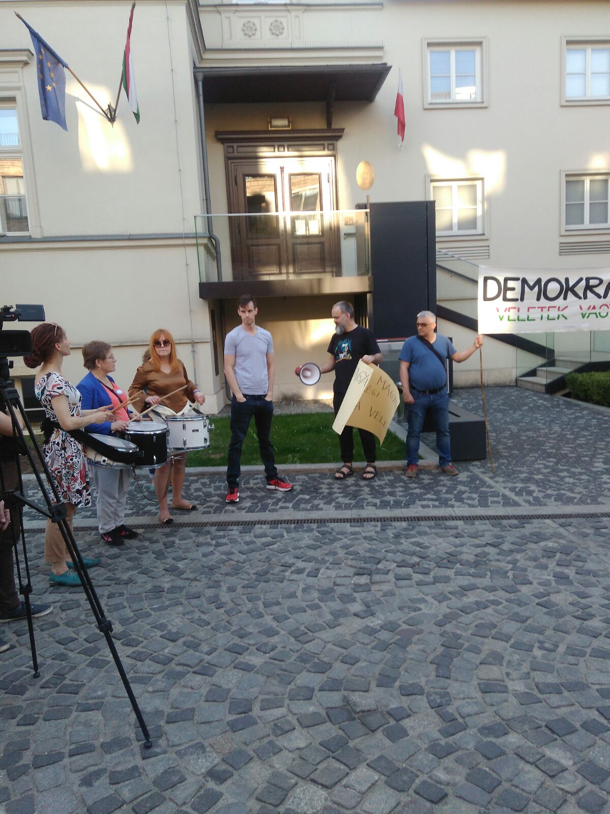 14 kwietnia 2018 roku o godzinie 17.30 odbył się solidarnościowy protest przed konsulatem węgierskim w Krakowie. Podczas pikiety kilkadziesiąt osób wysłuchało oświadczenia KOD-u w sprawie sytuacji w Polsce i na Węgrzech oraz niszczenia demokracji w obu krajach, których historia ma wiele punktów stycznych. Elżbieta Pytlarz przypomniała, że KOD dwa lata temu wspólnie z demokratami węgierskimi protestował przed polską ambasadą w Budapeszcie. Przedstawiciel młodzieży węgierskiej mieszkającej w Krakowie podziękował mieszkańcom Krakowa za wsparcie protestów na Węgrzech oraz przedstawił informacje na temat łamania zasad wolnych wyborów w tym kraju. Mówił o przypadkach znikania protokołów, o likwidacji wolnych mediów przed wyborami oraz o przyjęciu ordynacji wyborczej, która odebrała węgierskiej opozycji możliwość kontrolowania władzy. Pikietę zakończyło wspólne skandowanie hasła „Jarek, Wiktor dwa bratanki, zakujemy ich w kajdanki”.
