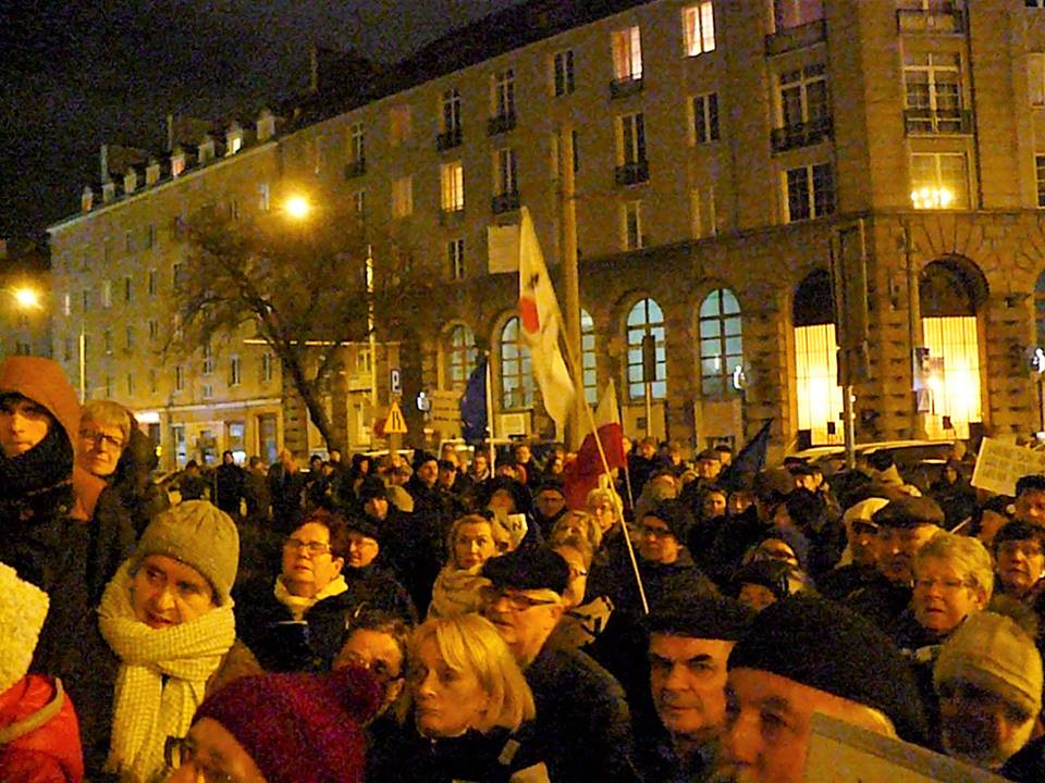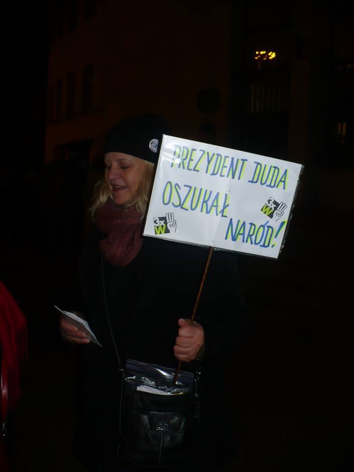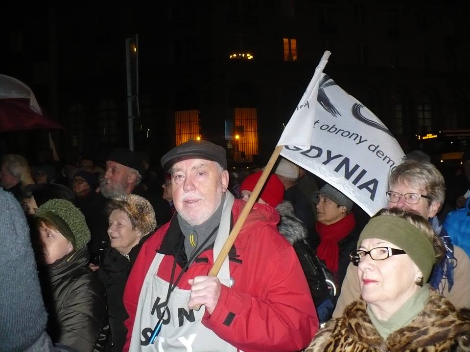 Gdyńska grupa Komitetu Obrony Demokracji w piątek 24 listopada spotkała się pod Sądem Rejonowym. W zgromadzeniu wzięło udział około 300 osób. Jeden z sympatyków KODu opowiedział uczestnikom o wydarzeniu, które miało miejsce w Katowicach. Chodziło o powieszeniu na szubienicach zdjęć polskich europosłów opozycji głosujących za rezolucją w sprawie Polski.