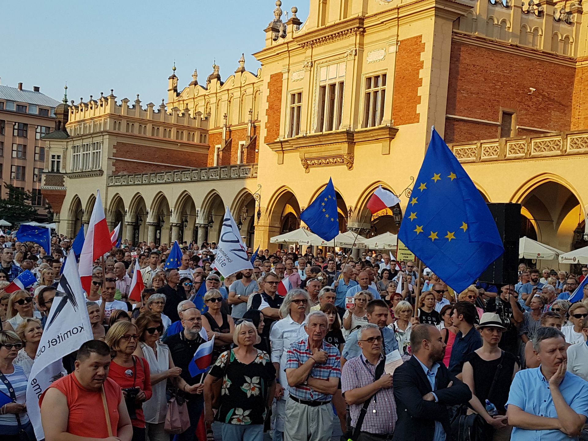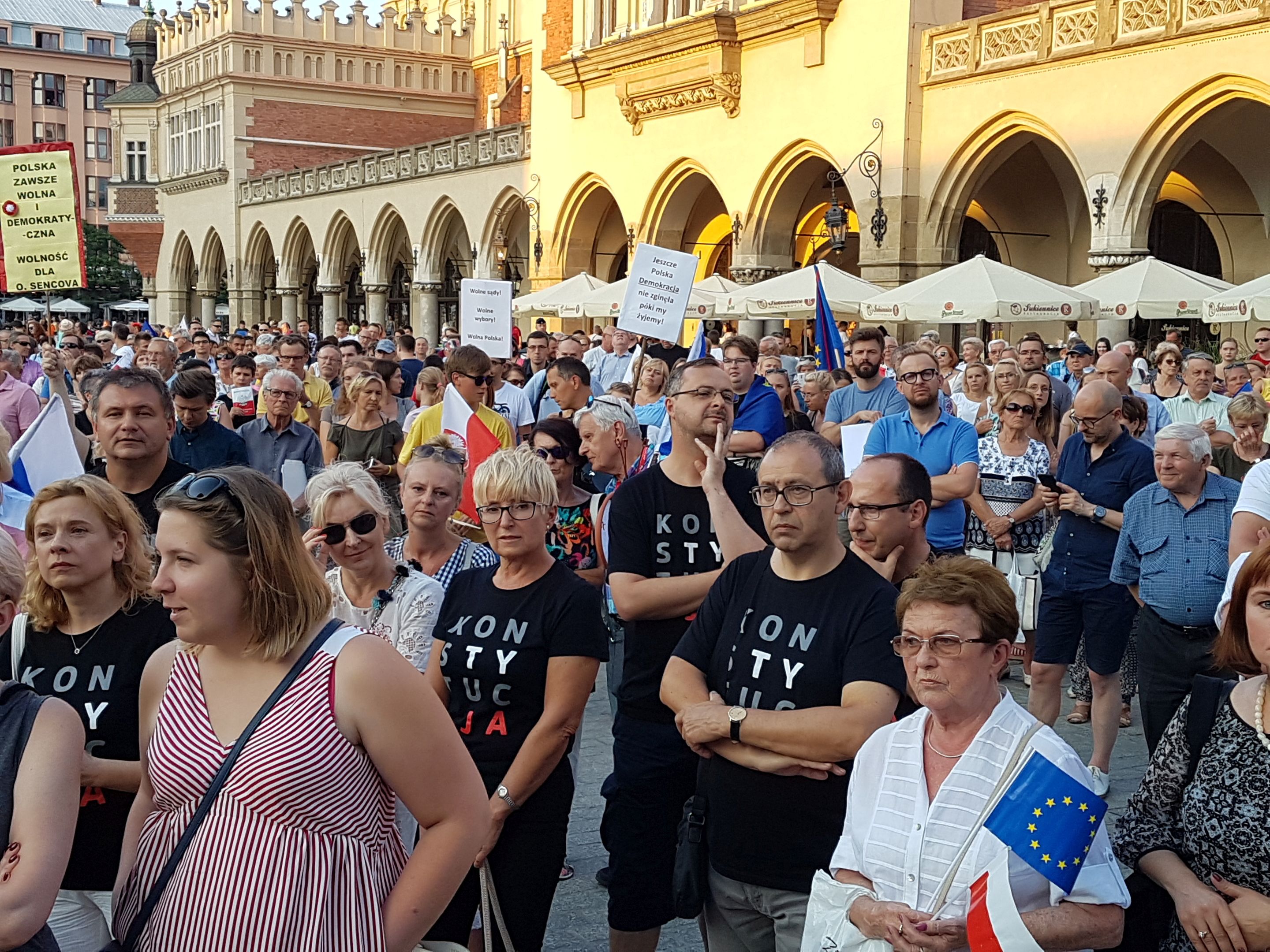 Wieczorem 24 lipca w Krakowie przed Wieżą Ratuszową na Rynku Głównym odbył się godzinny protest przeciwko demolowaniu polskiego sądownictwa przez PiS. Manifestację zorganizował KOD Małopolska, a prowadziła ją Dominika Jaźwiecka.