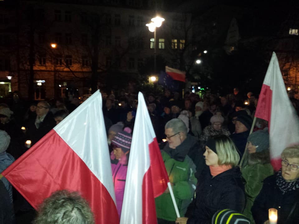 W piątkowy wieczór manifestowaliśmy pod sądami ziemi opolskiej wyrażając sprzeciw wobec prezydenckich ustaw dotyczących KRS i SN, nad którymi obecnie pracuje Sejm. Ich przyjęcie w kształcie proponowanym przez większość parlamentarną uderza w fundamenty demokratycznego i wolnego państwa prawa. Ich dalsze procedowanie i wprowadzenie do porządku prawnego będzie równoznaczne ze złamaniem Konstytucji RP oraz postawieniem Polski poza nawiasem demokratycznych państw. Nie ma na to naszej zgody.