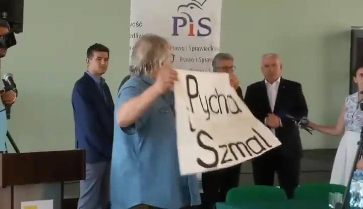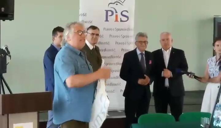 Na spotkaniu tym pojawili się też działacze lubuskiego KODu. Już na samym początku gościa powitał nasz niezawodny Wiesław, rozwijając przy Piotrowiczu baner z napisem „Pycha i Szmal”. Został jednak odsunięty od PiSowskiego gościa. Następnie przez ponad godzinę Piotrowicz opowiadał o sukcesach obecnej ekipy rządzącej, a gdy nadeszła część spotkania przeznaczona na pytania z sali i jako pierwszy głos zabrał Wiesław, zaczęło się zamieszanie, skutkiem którego, „ofiara” komunistycznego reżimu – tow. Piotrowicz wyszedł ze spotkania. Opuszczając salę słyszał okrzyki – „tchórz”! „tchórz”! Cała akcja spowodowała spore zamieszanie na sali i agresję wyznawców PiSu. Na zewnątrz Wiesława spisała policja. Jest to coraz częściej stosowana przez policję praktyka, mająca na celu wywołanie „miękkiej” perswazji na uczestników różnych protestów czy happeningów.