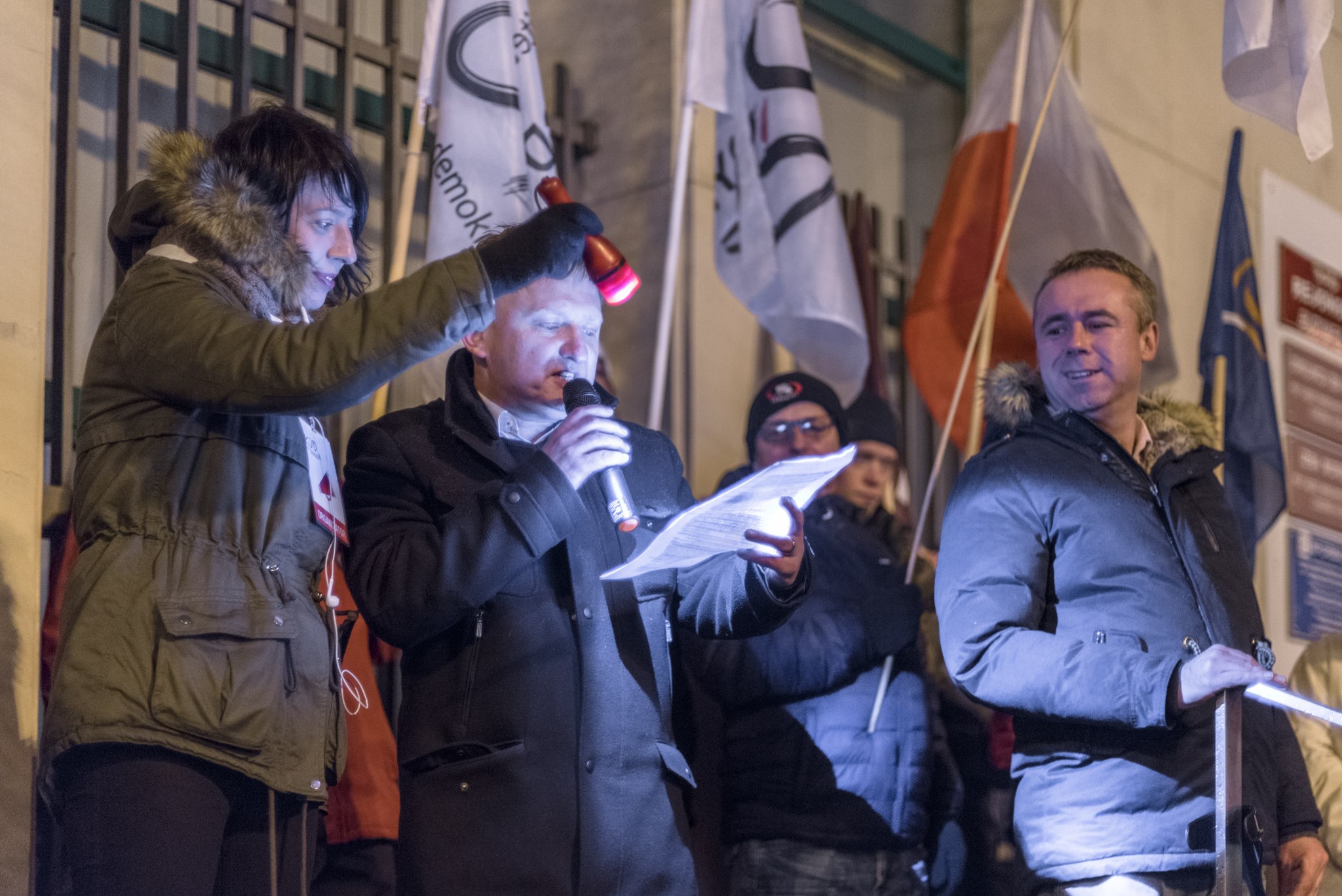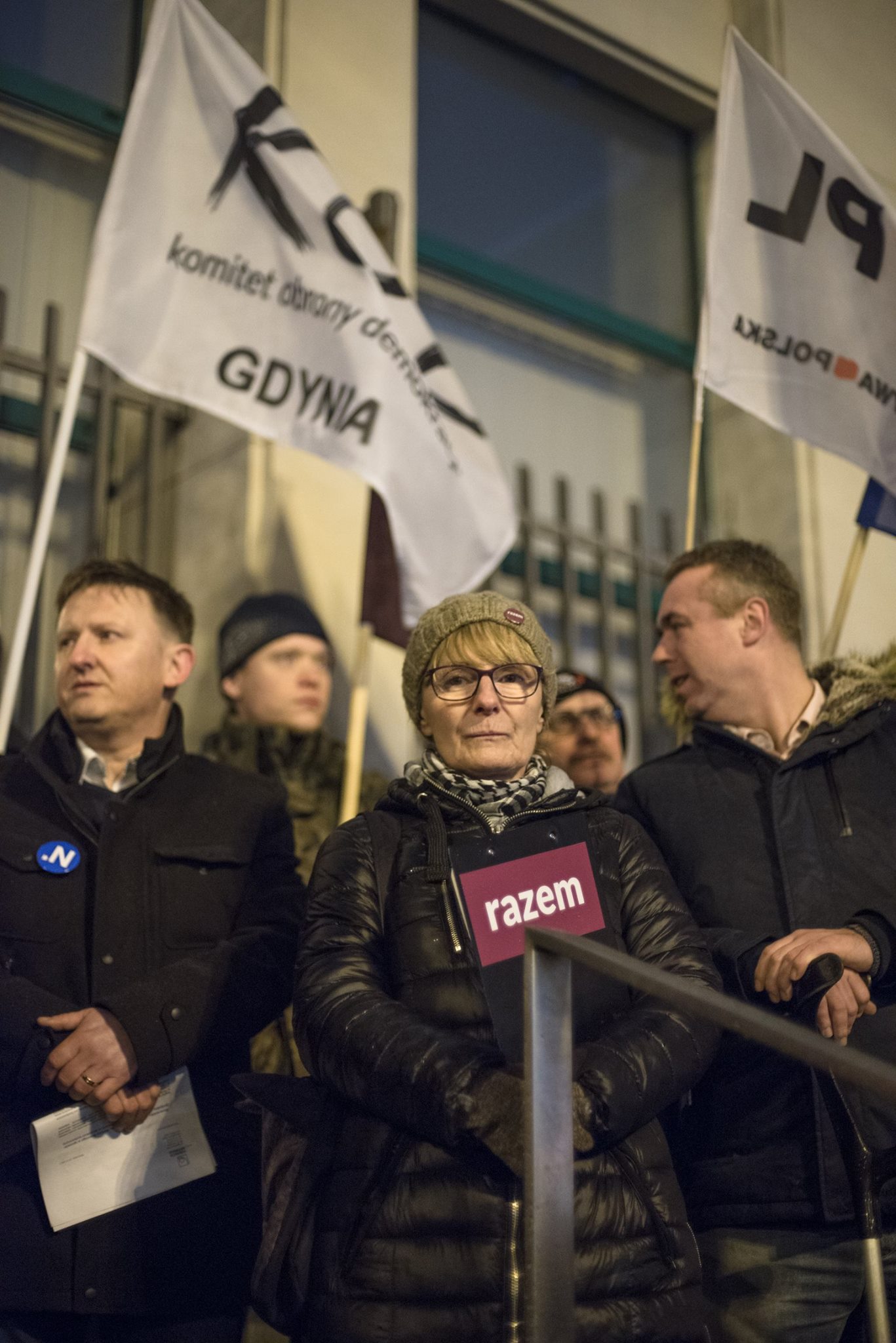 Zgromadzenie Narodowe, które odbyło się w Warszawie 5 grudnia nie przeszło bez echa również w Gdyni. Działacze Komitetu Obrony Demokracji, Nowoczesnej, Inicjatywy Polskiej i innych środowisk opozycyjnych spotkali się pod Sądem Rejonowym przy pl.Konstytucji. Chcieli wyrazić swój sprzeciw wobec prezydenckich projektów ustaw o Sądzie Najwyższym i Krajowej Radzie Sądownictwa. Początek zgromadzenia prowadził jak zwykle jeden z działaczy Gdyńskiego KOD-u. Zaraz po nim głos zabrał Mecenas Nowosielski, który opowiedział o swoich doświadczeniach z okresu pierwszej Solidarności. Przypomniał jak ważne jest to żeby sędziowie nie ulegli strachowi i pozostali wierni Konstytucji. Przemawiali również działacze środowisk opozycyjnych między innymi partii Razem i Inicjatywy Polskiej.